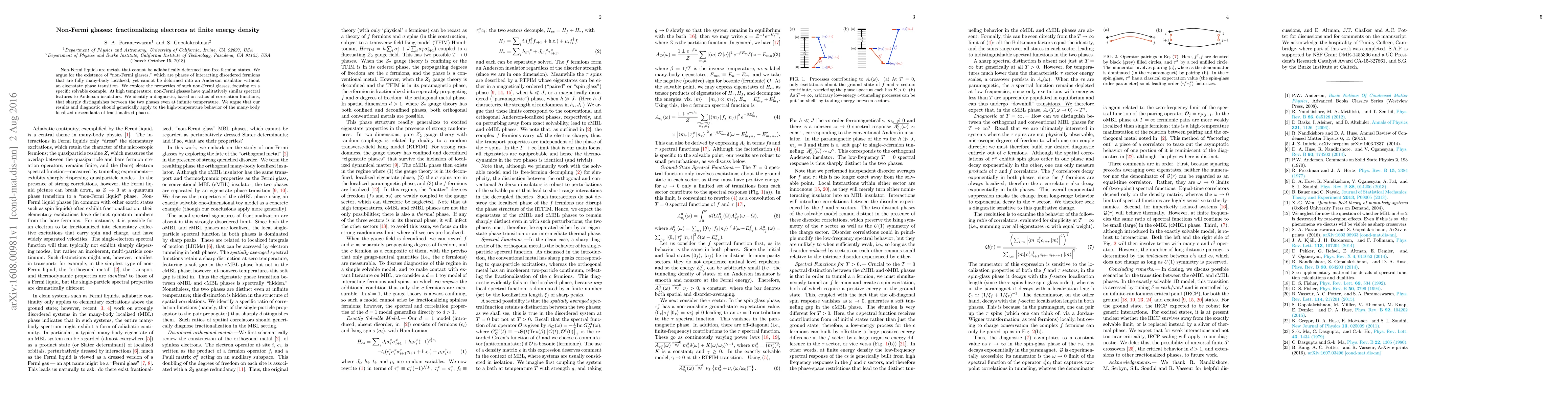 Researchers discovered a new phase of matter called non-Fermi glasses, which are metals that can't be transformed into free fermion states without an eigenstate phase transition. These glasses have unique spectral features at high temperatures, distinguishable by diagnostic ratios of correlation functions.