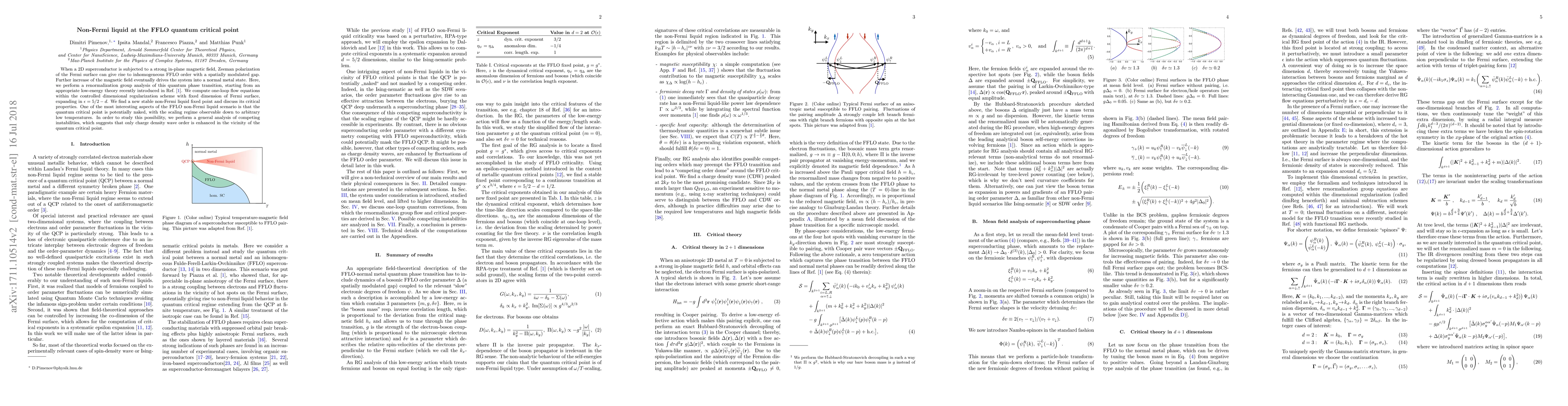 When a 2D superconductor is subjected to a strong in-plane magnetic field, Zeeman polarization of the Fermi surface can give rise to inhomogeneous FFLO order with a spatially modulated gap. Further increase of the magnetic field eventually drives the system into a normal metal state. Here, we perform a renormalization group analysis of this quantum phase transition, starting from an appropriate low-energy theory recently introduced by Piazza et al. (Ref.1). We compute one-loop flow equations within the controlled dimensional regularization scheme with fixed dimension of Fermi surface, expanding in $\epsilon = 5/2 - d$. We find a new stable non-Fermi liquid fixed point and discuss its critical properties. One of the most interesting aspects of the FFLO non-Fermi liquid scenario is that the quantum critical point is potentially naked, with the scaling regime observable down to arbitrary low temperatures. In order to study this possibility, we perform a general analysis of competing instabilities, which suggests that only charge density wave order is enhanced in the vicinity of the quantum critical point.