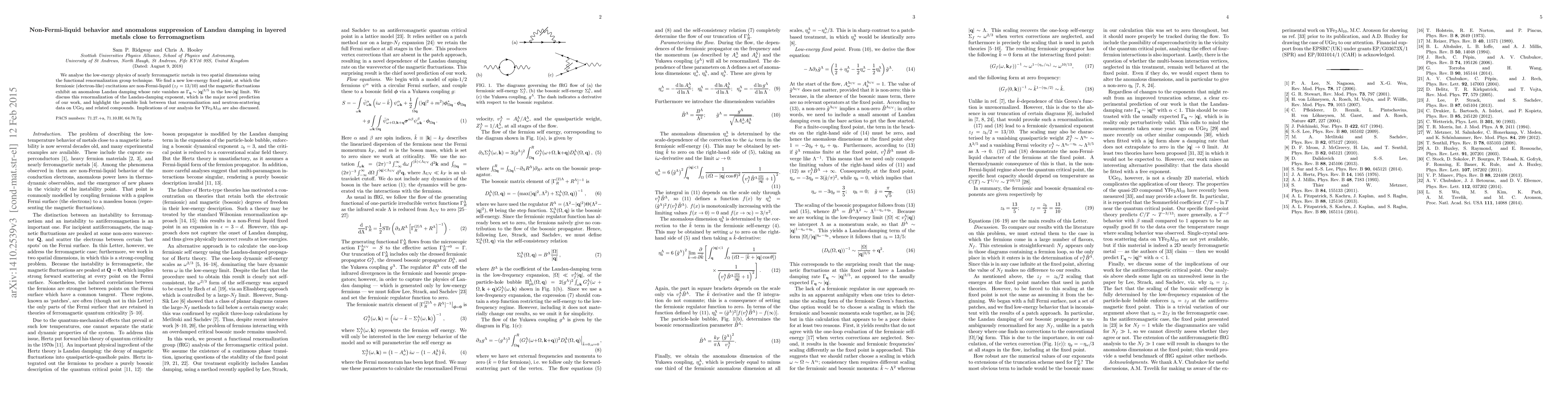 This paper uses the functional renormalization group to study nearly ferromagnetic metals in two dimensions, revealing a new low-energy fixed point where electron-like excitations exhibit non-Fermi-liquid behavior and magnetic fluctuations show an unusual Landau damping rate that diminishes as $\vert {\bf q} \vert^{3/5}$. This novel damping behavior is linked to neutron-scattering data in certain compounds.