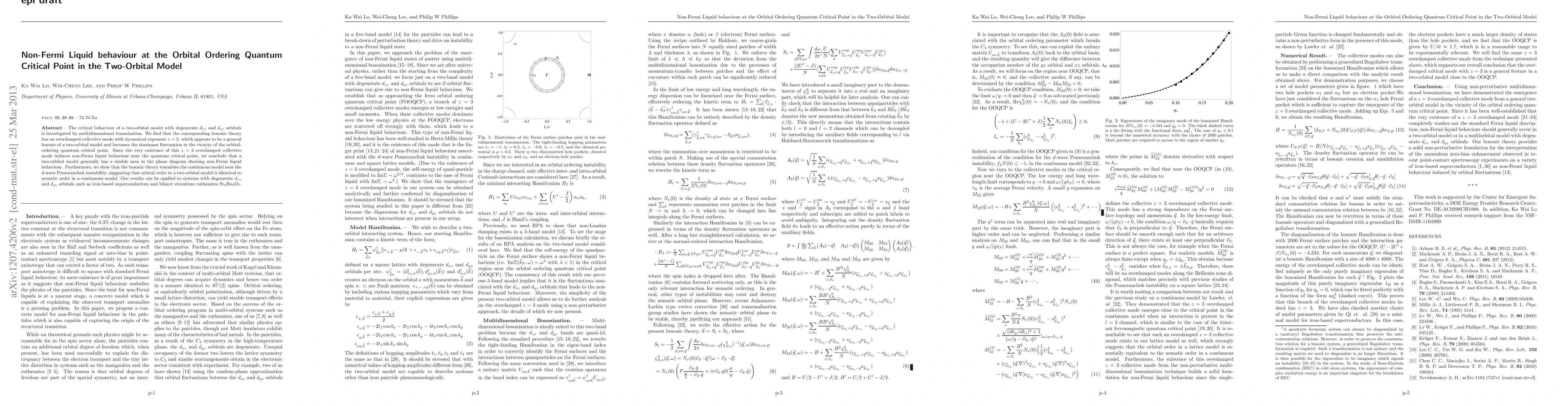 This paper investigates the critical behavior of a two-orbital model near an orbital-ordering quantum critical point, revealing a $z=3$ overdamped collective mode that leads to non-Fermi liquid behavior. The study suggests that orbital order in such models is equivalent to nematic order in continuous models.