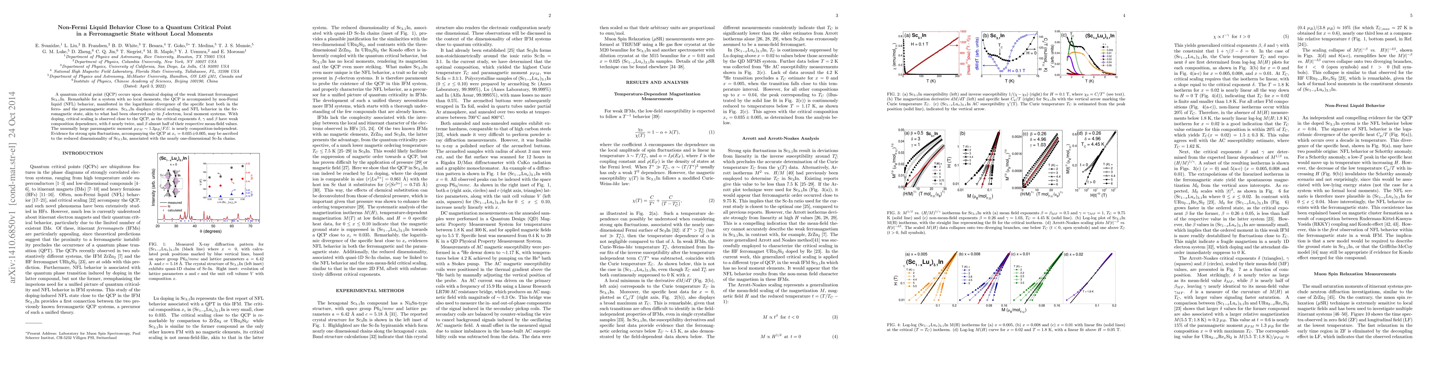This paper investigates the quantum critical behavior in Sc_{3.1}In, revealing non-Fermi liquid behavior near a ferromagnetic quantum critical point without local moments. The study finds critical scaling and unusual spin fluctuations, suggesting the influence of reduced dimensionality in the material's structure.