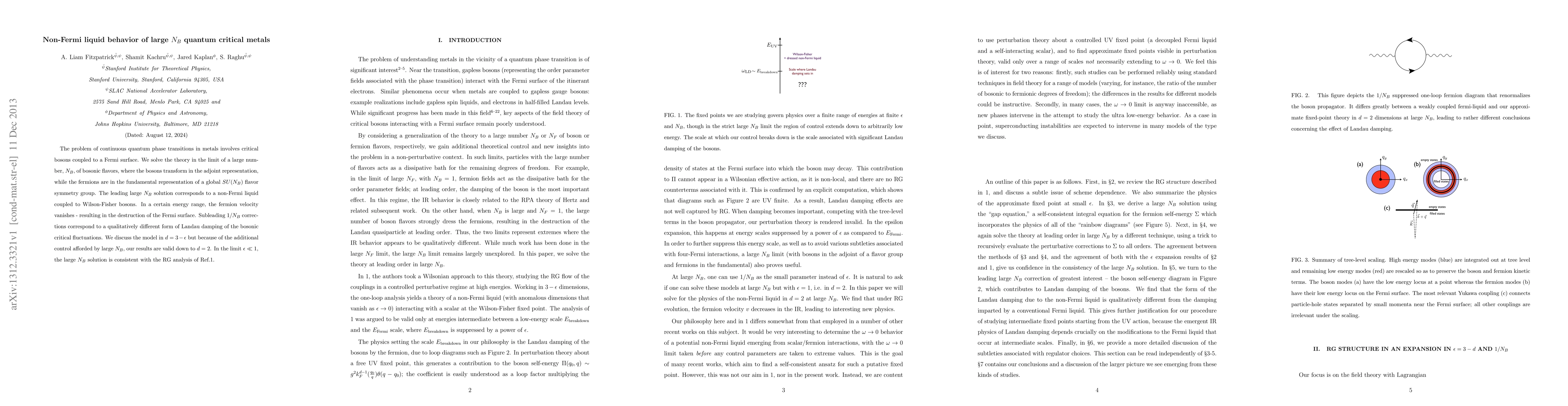 The problem of continuous quantum phase transitions in metals involves critical bosons coupled to a Fermi surface. We solve the theory in the limit of a large number, N_B, of bosonic flavors, where the bosons transform in the adjoint representation, while the fermions are in the fundamental representation of a global SU(N_B) flavor symmetry group. The leading large N_B solution corresponds to a non-Fermi liquid coupled to Wilson-Fisher bosons. In a certain energy range, the fermion velocity vanishes - resulting in the destruction of the Fermi surface. Subleading 1/N_B corrections correspond to a qualitatively different form of Landau damping of the bosonic critical fluctuations. We discuss the model in d=3-epsilon but because of the additional control afforded by large N_B, our results are valid down to d=2. In the limit epsilon << 1, the large N_B solution is consistent with the RG analysis of Ref. 1.
