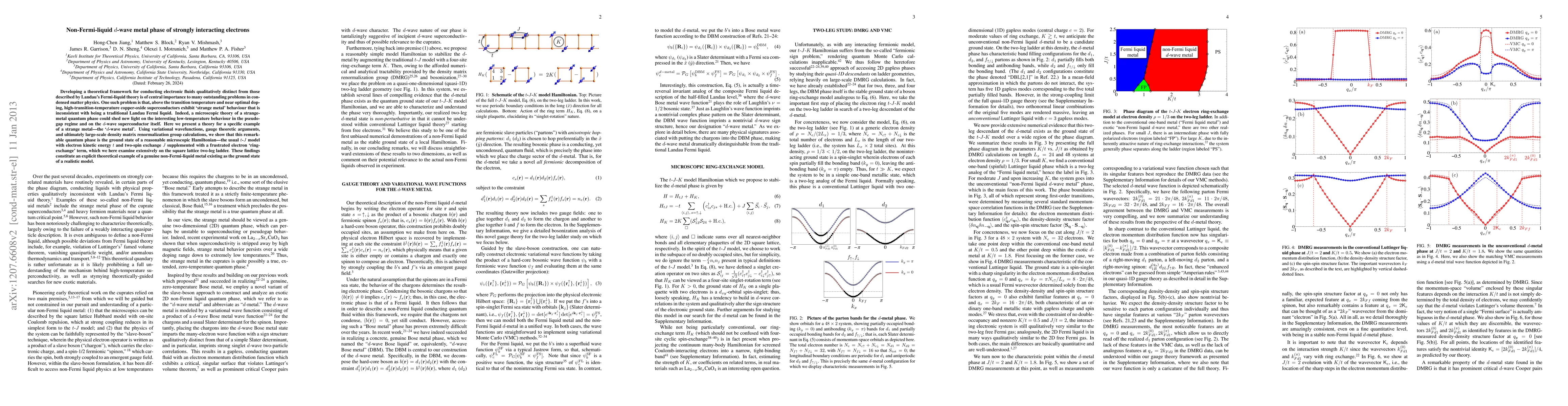 Developing a theoretical framework for conducting electronic fluids qualitatively distinct from those described by Landau's Fermi-liquid theory is of central importance to many outstanding problems in condensed matter physics. One such problem is that, above the transition temperature and near optimal doping, high-transition-temperature copper-oxide superconductors exhibit `strange metal' behaviour that is inconsistent with being a traditional Landau Fermi liquid. Indeed, a microscopic theory of a strange-metal quantum phase could shed new light on the interesting low-temperature behaviour in the pseudogap regime and on the d-wave superconductor itself. Here we present a theory for a specific example of a strange metal---the 'd-wave metal'. Using variational wavefunctions, gauge theoretic arguments, and ultimately large-scale density matrix renormalization group calculations, we show that this remarkable quantum phase is the ground state of a reasonable microscopic Hamiltonian---the usual t-J model with electron kinetic energy $t$ and two-spin exchange $J$ supplemented with a frustrated electron `ring-exchange' term, which we here examine extensively on the square lattice two-leg ladder. These findings constitute an explicit theoretical example of a genuine non-Fermi-liquid metal existing as the ground state of a realistic model.