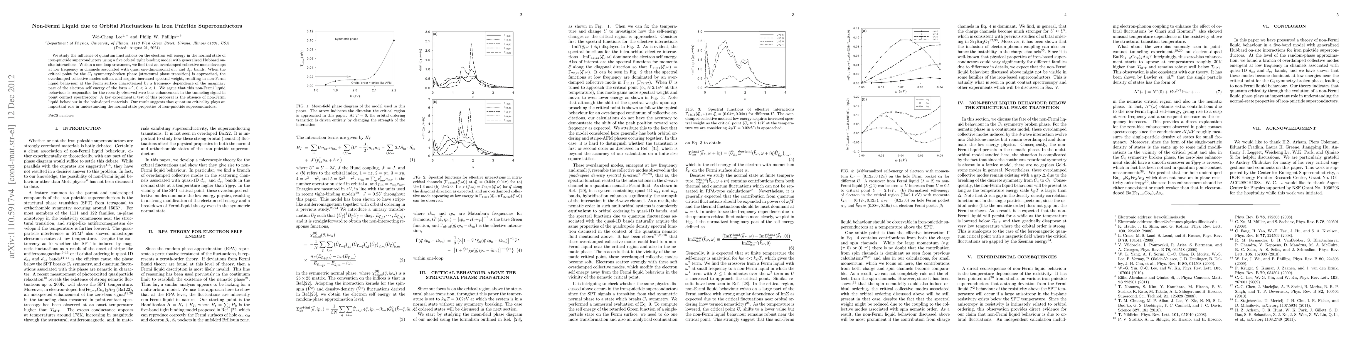 This paper investigates the normal state of iron-pnictide superconductors, finding that quantum fluctuations lead to non-Fermi liquid behavior characterized by $\omega^\lambda$ dependence, $0<\lambda<1$, due to orbital fluctuations in quasi-1D bands. This behavior is linked to the structural phase transition and may explain recent tunneling observations.