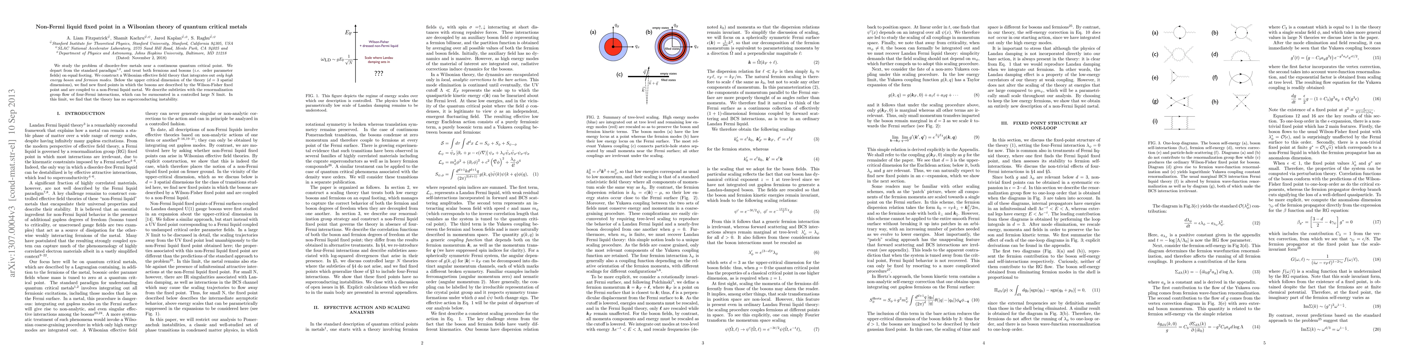 This paper explores a Wilsonian effective field theory for disorder-free metals near quantum critical points, treating both fermions and bosons equally. It identifies non-Fermi liquid fixed points below the upper critical dimension, where bosons are governed by the Wilson-Fisher fixed point and coupled to non-Fermi liquid metals, with no superconducting instability in the large N limit.