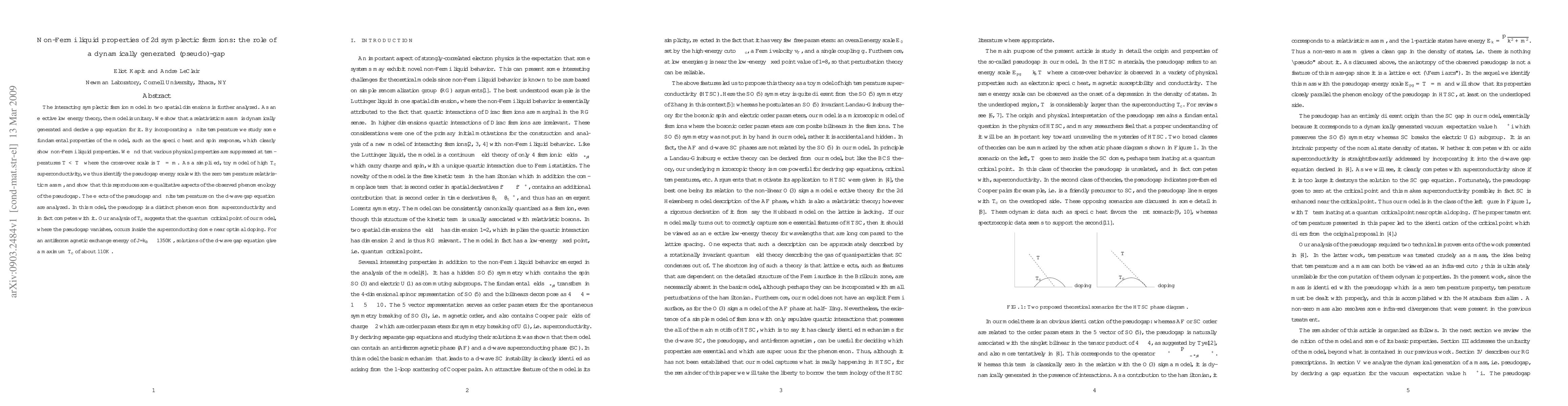 The interacting symplectic fermion model in two spatial dimensions is further analyzed. As an effective low energy theory, the model is unitary. We show that a relativistic mass m is dynamically generated and derive a gap equation for it. By incorporating a finite temperature we study some fundamental properties of the model, such as the specific heat and spin response, which clearly show non-Fermi liquid properties. We find that various physical properties are suppressed at temperatures T< T* where the cross-over scale is T* = m. As a simplified, toy model of high Tc superconductivity, we thus identify the pseudogap energy scale with the zero temperature relativistic mass m, and show that this reproduces some qualitative aspects of the observed phenomenology of the pseudogap. The effects of the pseudogap and finite temperature on the d-wave gap equation are analyzed. In this model, the pseudogap is a distinct phenomenon from superconductivity and in fact competes with it. Our analysis of Tc suggests that the quantum critical point of our model, where the pseudogap vanishes, occurs inside the superconducting dome near optimal doping. For an antiferromagnetic exchange energy of J/k_B ~ 1350K, solutions of the d-wave gap equation give a maximum Tc of about 110K.