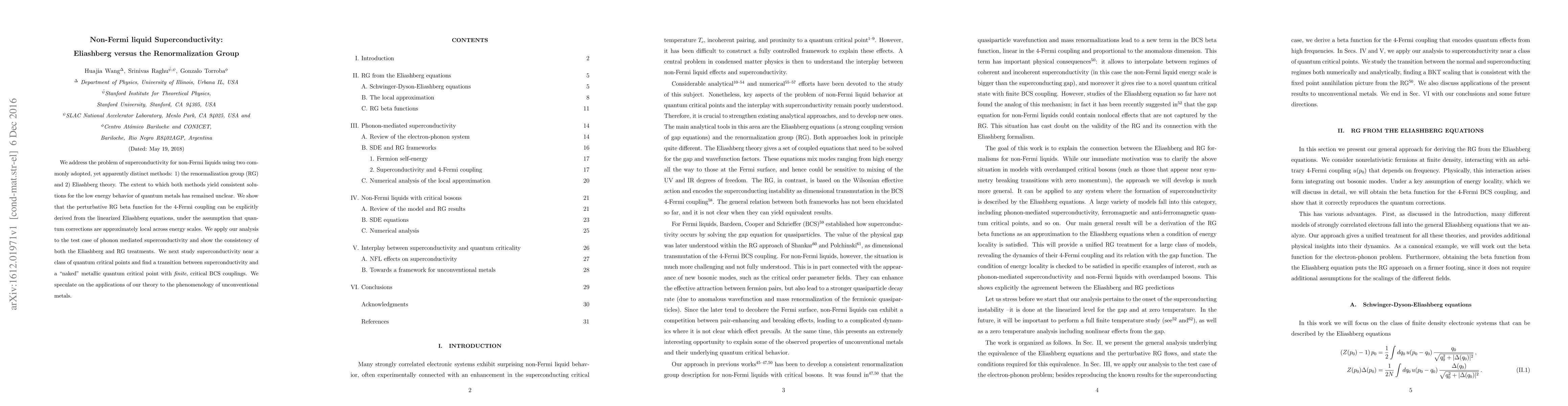 This paper compares the renormalization group (RG) and Eliashberg theory approaches to superconductivity in non-Fermi liquids, demonstrating their consistency through phonon-mediated superconductivity. It reveals a transition between superconductivity and a metallic quantum critical point, suggesting potential applications to unconventional metals.