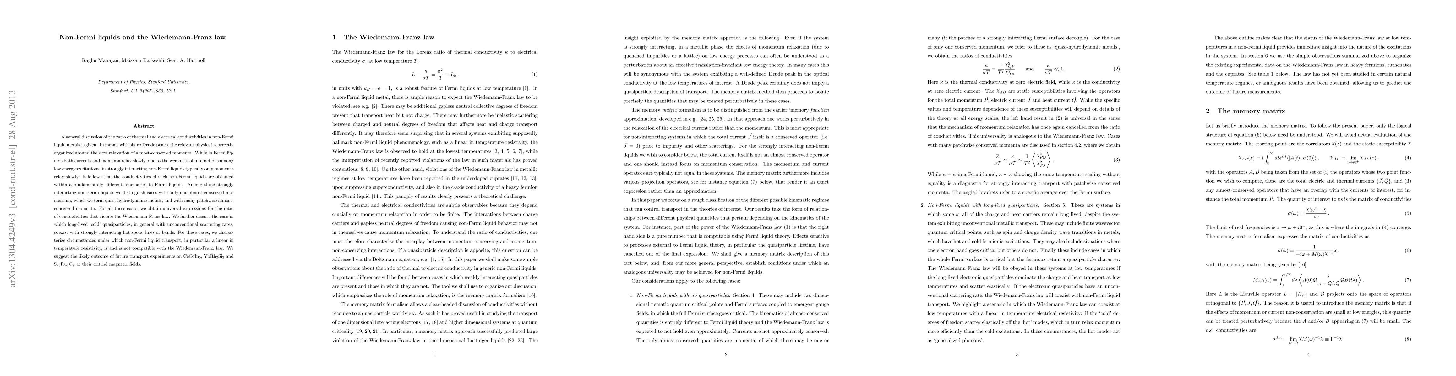 The paper presents a detailed analysis of non-Fermi liquid metals, distinguishing between hydrodynamic and patchwise almost-conserved momentum cases, and derives universal expressions for the ratio of conductivities that violate the Wiedemann-Franz law.