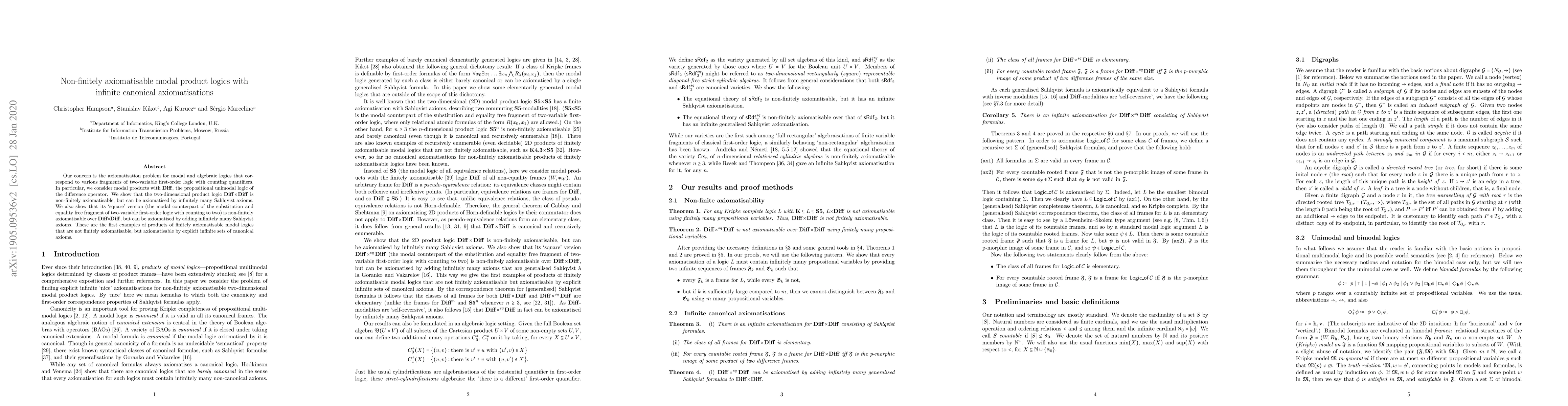 Our concern is the axiomatisation problem for modal and algebraic logics that correspond to various fragments of two-variable first-order logic with counting quantifiers. In particular, we consider modal products with Diff, the propositional unimodal logic of the difference operator. We show that the two-dimensional product logic Diff x Diff is non-finitely axiomatisable, but can be axiomatised by infinitely many Sahlqvist axioms. We also show that its `square' version (the modal counterpart of the substitution and equality free fragment of two-variable first-order logic with counting to two) is non-finitely axiomatisable over Diff x Diff, but can be axiomatised by adding infinitely many Sahlqvist axioms. These are the first examples of products of finitely axiomatisable modal logics that are not finitely axiomatisable, but axiomatisable by explicit infinite sets of canonical axioms.