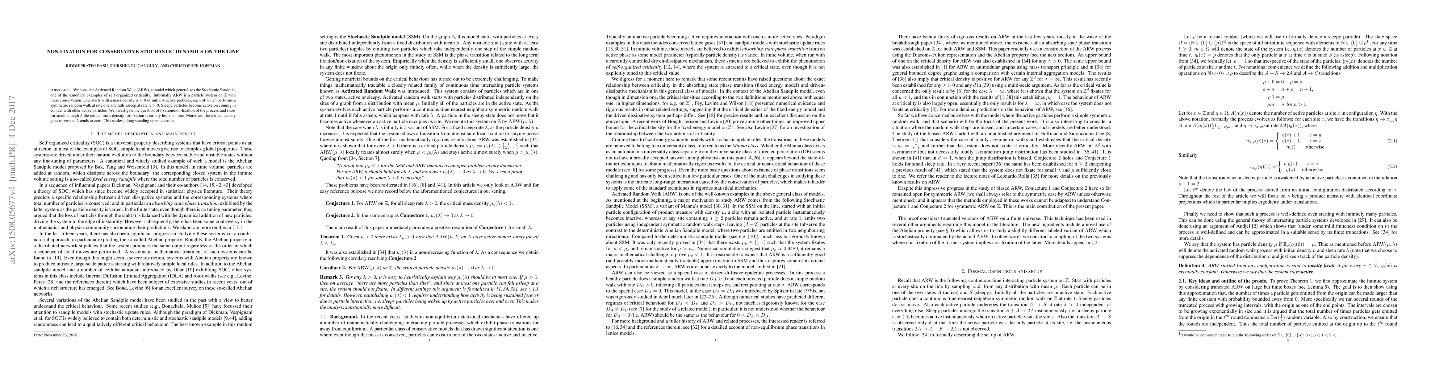 We consider Activated Random Walk (ARW), a model which generalizes the Stochastic Sandpile, one of the canonical examples of self organized criticality. Informally ARW is a particle system on $\mathbb{Z}$ with mass conservation. One starts with a mass density $\mu>0$ of initially active particles, each of which performs a symmetric random walk at rate one and falls asleep at rate $\lambda>0$. Sleepy particles become active on coming in contact with other active particles. We investigate the question of fixation/non-fixation of the process, and show for small enough $\lambda$, the critical mass density for fixation is strictly less than one. Moreover, the critical density goes to zero as $\lambda$ tends to zero. This settles a long standing open question.