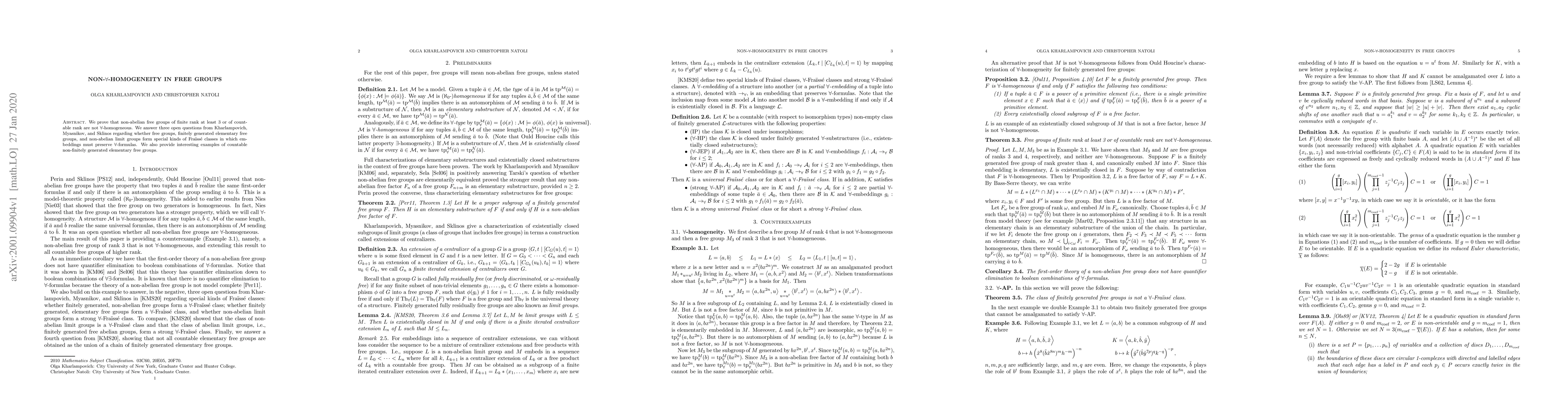 This paper demonstrates that non-abelian free groups of rank at least 3 or countable rank are not $\forall$-homogeneous, addressing open questions about their classification within Fraissé classes. It also presents examples of countable non-finitely generated elementary free groups.