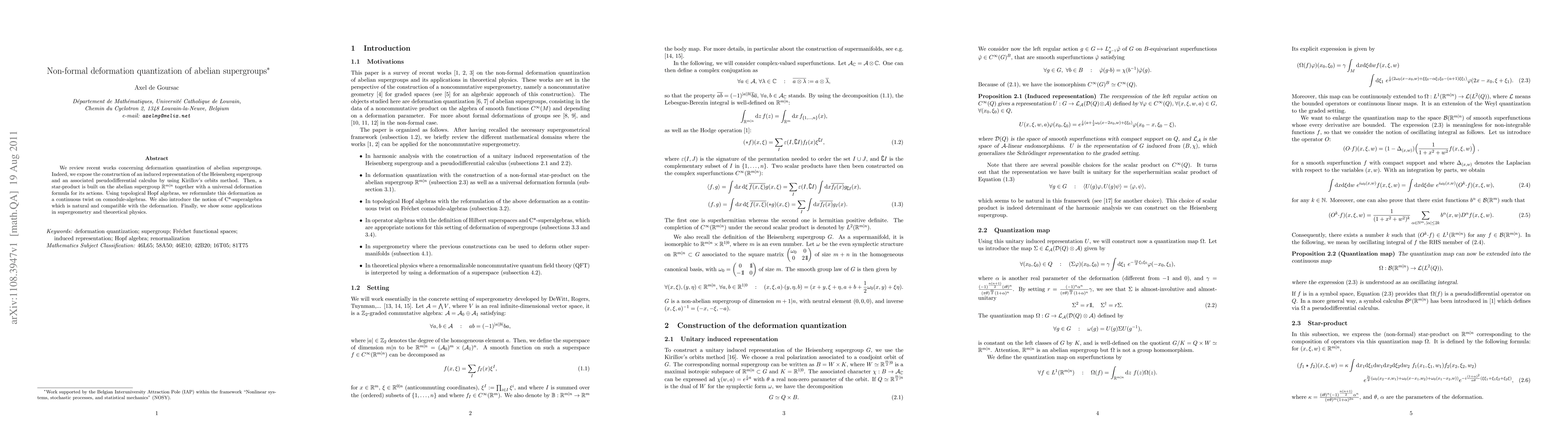 This paper explores deformation quantization of abelian supergroups, introducing a new pseudodifferential calculus and C*-superalgebra, with potential applications in supergeometry and theoretical physics.