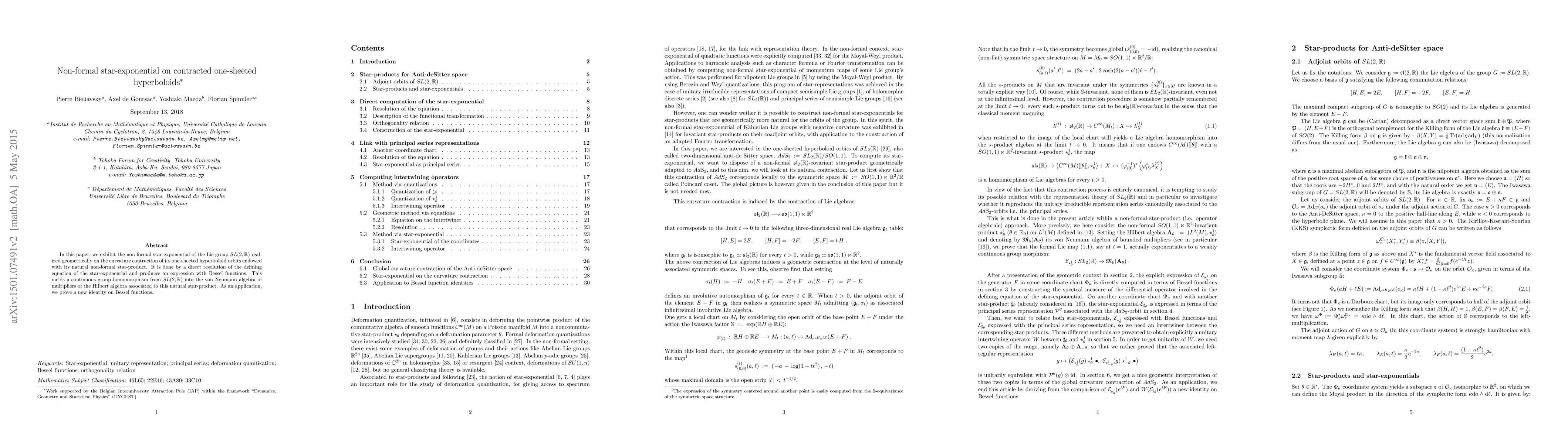 This paper presents the non-formal star-exponential for the Lie group SL(2,R) on its contracted one-sheeted hyperboloid, solved directly and expressed in terms of Bessel functions, establishing a continuous group homomorphism and proving a new Bessel function identity.