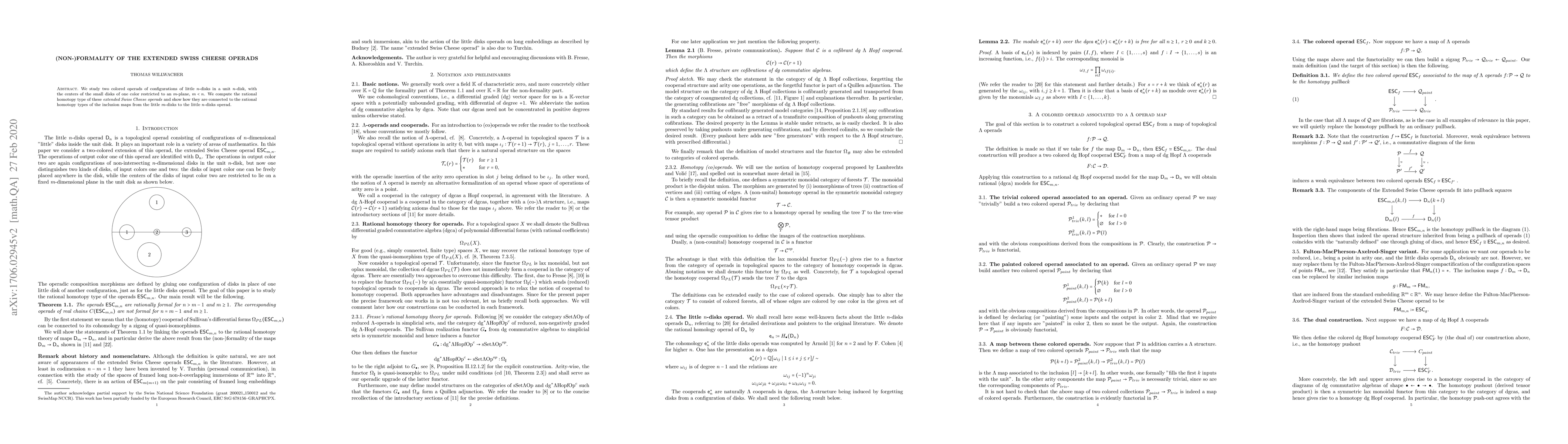 This paper computes the rational homotopy type of extended Swiss Cheese operads, which describe configurations of little $n$-disks with centers in a lower-dimensional $m$-plane, and links these to the rational homotopy types of inclusion maps from little $m$-disks to little $n$-disks operads.