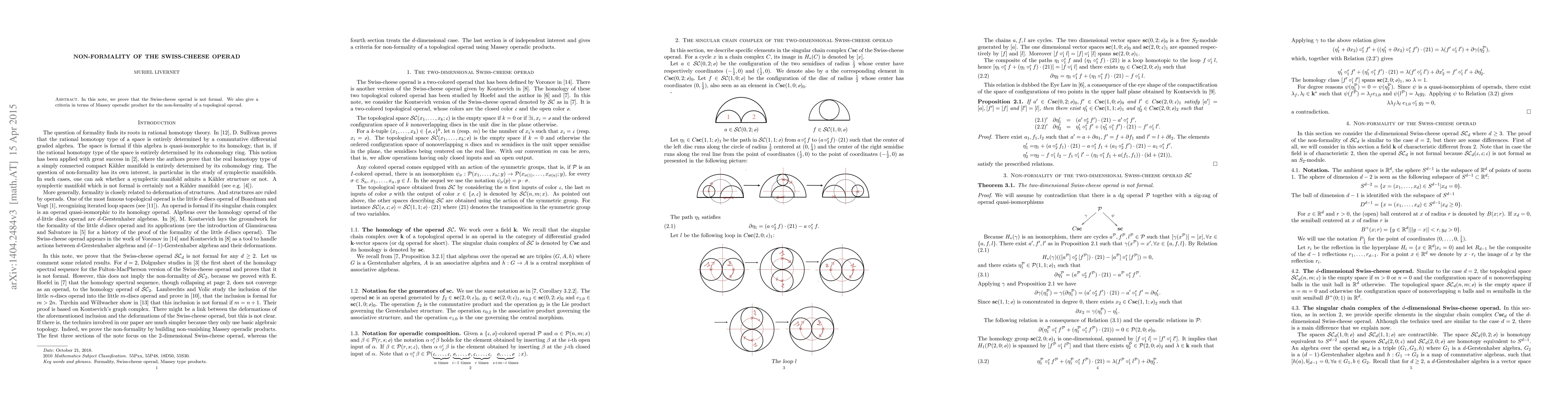 Summary: This research demonstrates that the Swiss-cheese operad is non-formal, using a criteria involving Massey operadic products to establish this result. The findings contribute to understanding the properties of topological operads.
