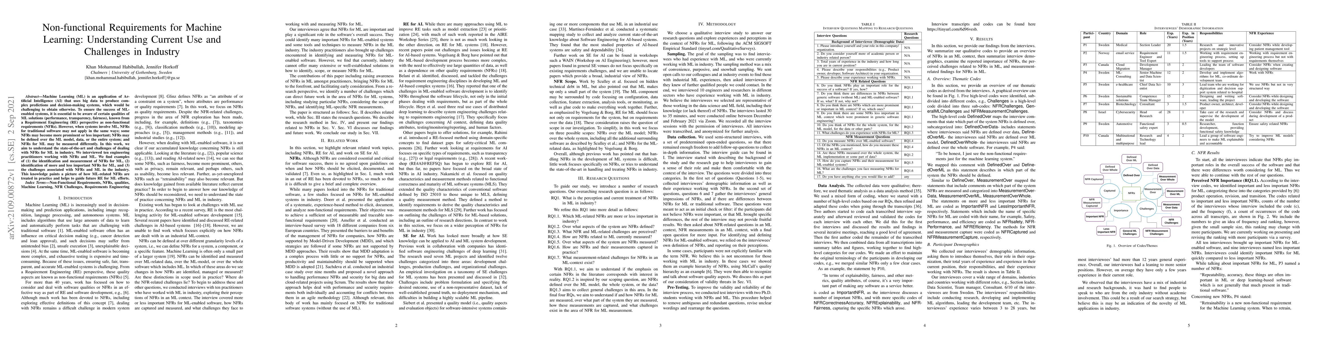 This paper explores non-functional requirements (NFRs) for machine learning (ML) systems, identifying how they are defined and measured in industry. Through interviews with practitioners, it highlights challenges in addressing these unique NFRs and provides insights into their relative importance and measurement.