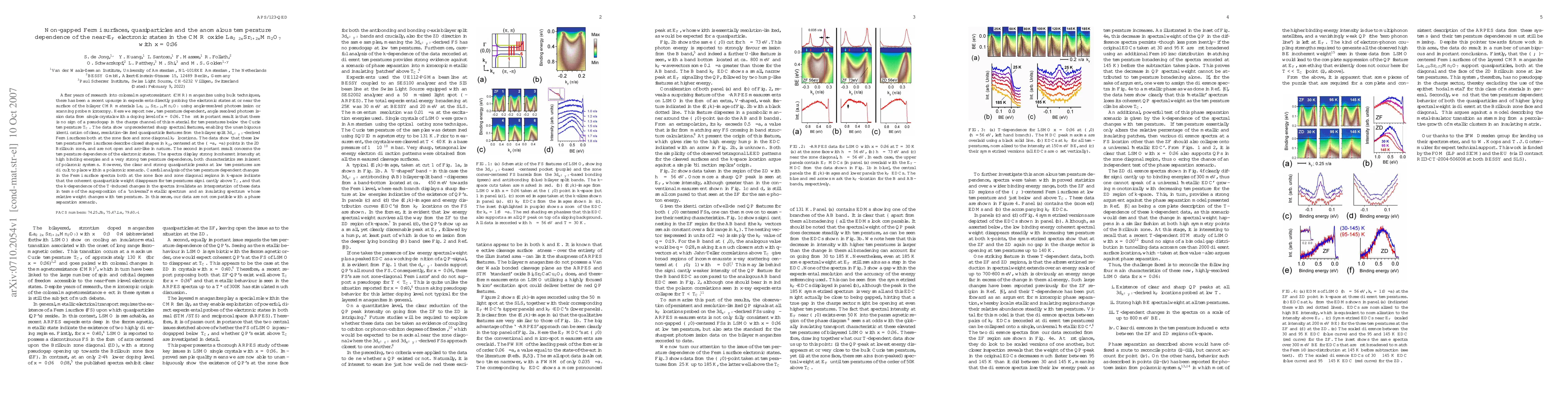 After years of research into colossal magnetoresistant (CMR) manganites using bulk techniques, there has been a recent upsurge in experiments directly probing the electronic states at or near the surface of the bilayer CMR materials La$_{2-2x}$Sr$_{1+2x}$Mn$_2$O$_7$ using angle-resolved photoemission or scanning probe microscopy. Here we report new, temperature dependent, angle resolved photoemission data from single crystals with a doping level of $x=0.36$. The first important result is that there is no sign of a pseudogap in the charge channel of this material for temperatures below the Curie temperature $T_C$. The second important result concerns the temperature dependence of the electronic states. The temperature dependent changes in the Fermi surface spectra both at the zone face and zone diagonal regions in $k$-space indicate that the coherent quasiparticle weight disappears for temperatures significantly above $T_C$, and that the $k$-dependence of the T-induced changes in the spectra invalidate an interpretation of these data in terms of the superposition of a `universal' metallic spectrum and an insulating spectrum whose relative weight changes with temperature. In this sense, our data are not compatible with a phase separation scenario.