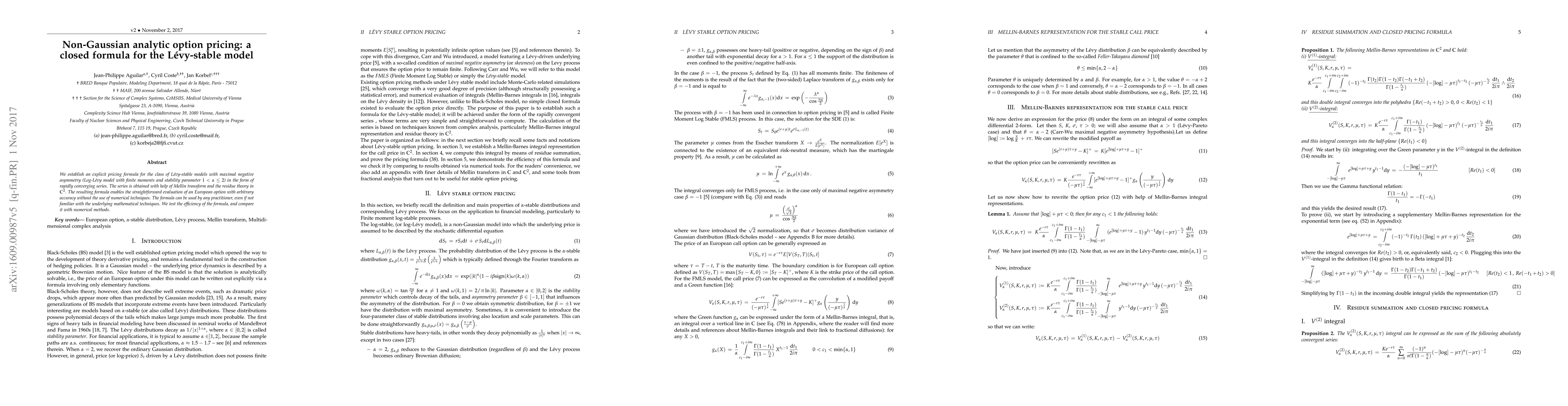 We establish an explicit pricing formula for the class of L\'evy-stable models with maximal negative asymmetry (Log-L\'evy model with finite moments and stability parameter $1<\alpha\leq 2$) in the form of rapidly converging series. The series is obtained with help of Mellin transform and the residue theory in $\mathbb{C}^2$. The resulting formula enables the straightforward evaluation of an European option with arbitrary accuracy without the use of numerical techniques. The formula can be used by any practitioner, even if not familiar with the underlying mathematical techniques. We test the efficiency of the formula, and compare it with numerical methods.