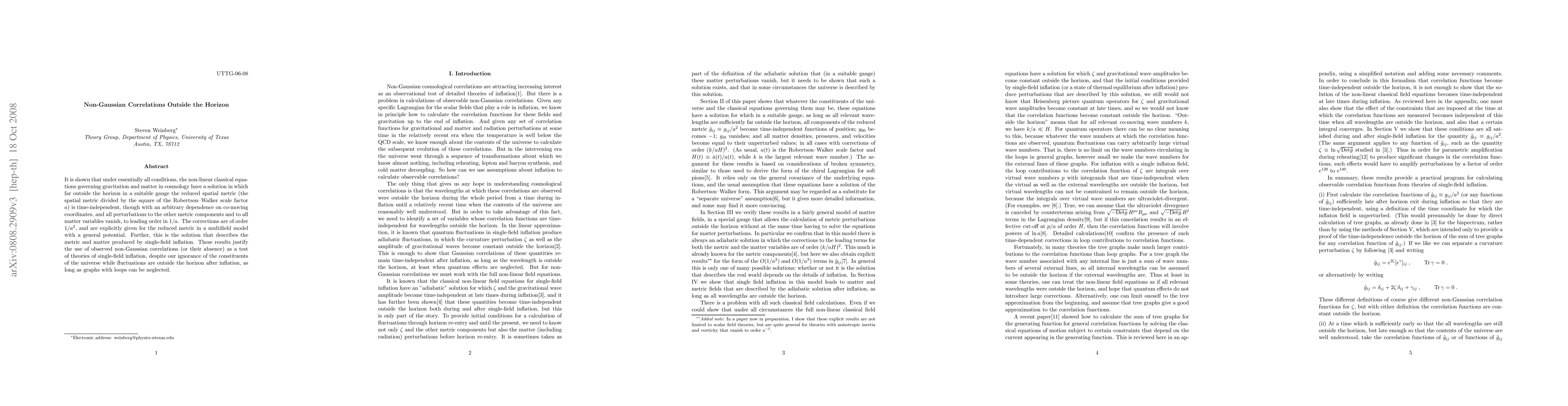 This paper demonstrates that non-Gaussian correlations in cosmology can be time-independent far outside the horizon, providing a solution to classical gravitational equations. This solution supports using observed non-Gaussian correlations to test single-field inflation theories, despite horizon-scale uncertainties.