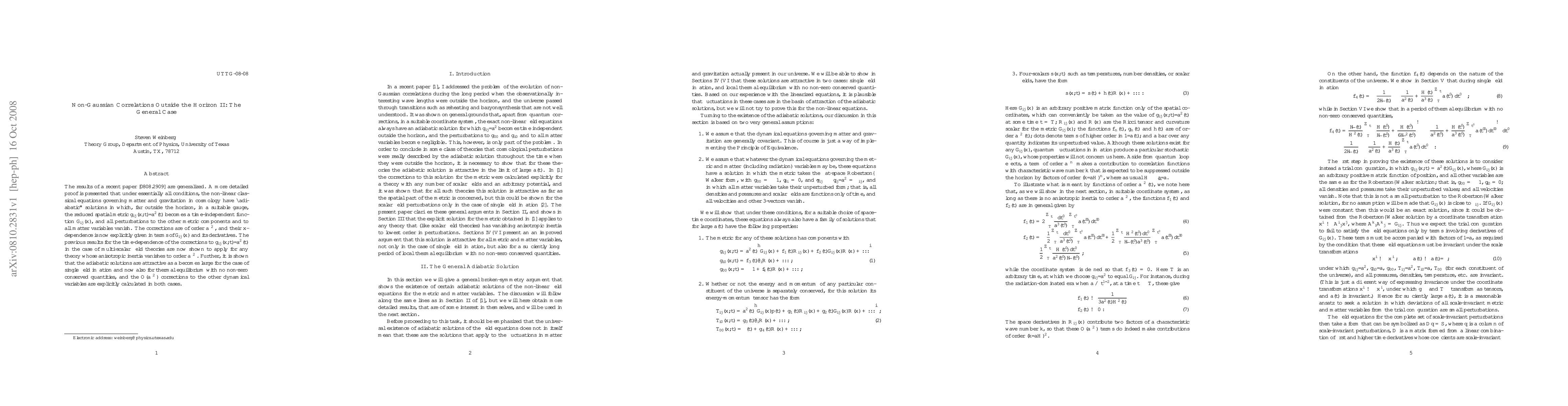 This paper generalizes previous findings on non-Gaussian cosmological correlations outside the horizon, demonstrating that under most conditions, classical equations governing matter and gravitation yield "adiabatic" solutions where spatial metric components become time-independent, and perturbations vanish. The corrections to these solutions are explicitly calculated and shown to apply broadly to various theories.
