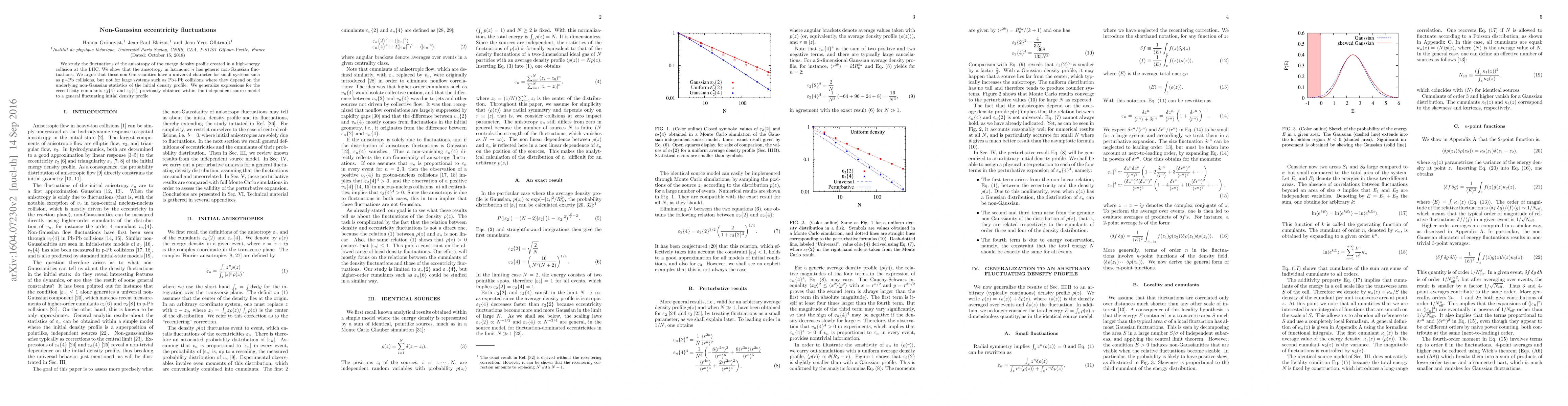 This paper investigates the non-Gaussian fluctuations in the anisotropy of energy density profiles from high-energy collisions at the LHC, showing that small systems like p+Pb exhibit universal non-Gaussianities, while large systems like Pb+Pb depend on the initial density profile's non-Gaussian statistics. It generalizes expressions for eccentricity cumulants to a broader initial density profile context.