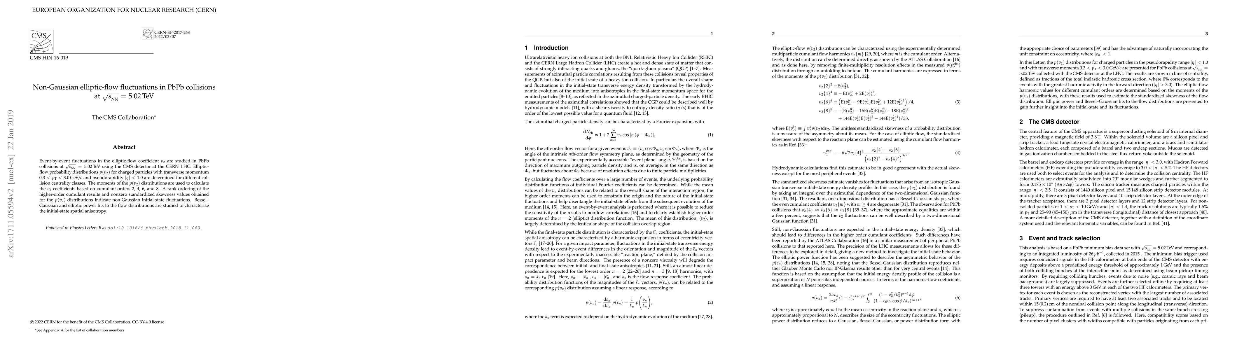 Researchers studied event-by-event fluctuations in elliptic-flow coefficient $v_2$ in PbPb collisions at 5.02 TeV, finding non-Gaussian initial-state behavior with higher-order cumulant results indicating anisotropic spatial fluctuation patterns.
