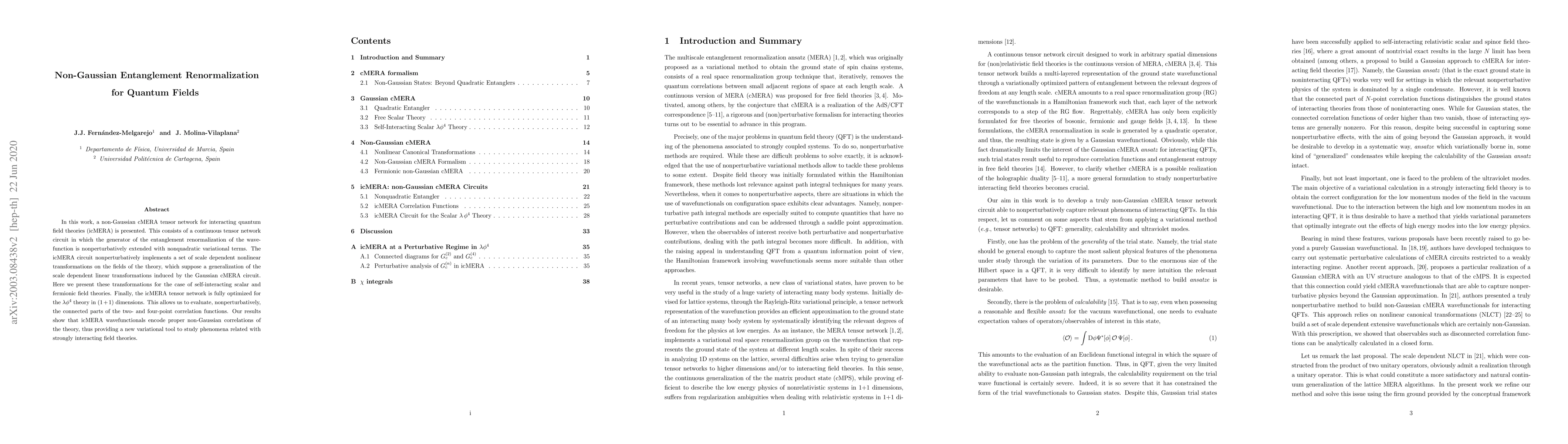 This paper introduces a non-Gaussian cMERA tensor network (icMERA) for interacting quantum field theories, which extends Gaussian methods with nonquadratic terms to capture non-Gaussian correlations. The icMERA circuit optimizes the $\lambda \phi^4$ theory, enabling nonperturbative evaluation of correlation functions and demonstrating its utility in studying strongly interacting field theories.