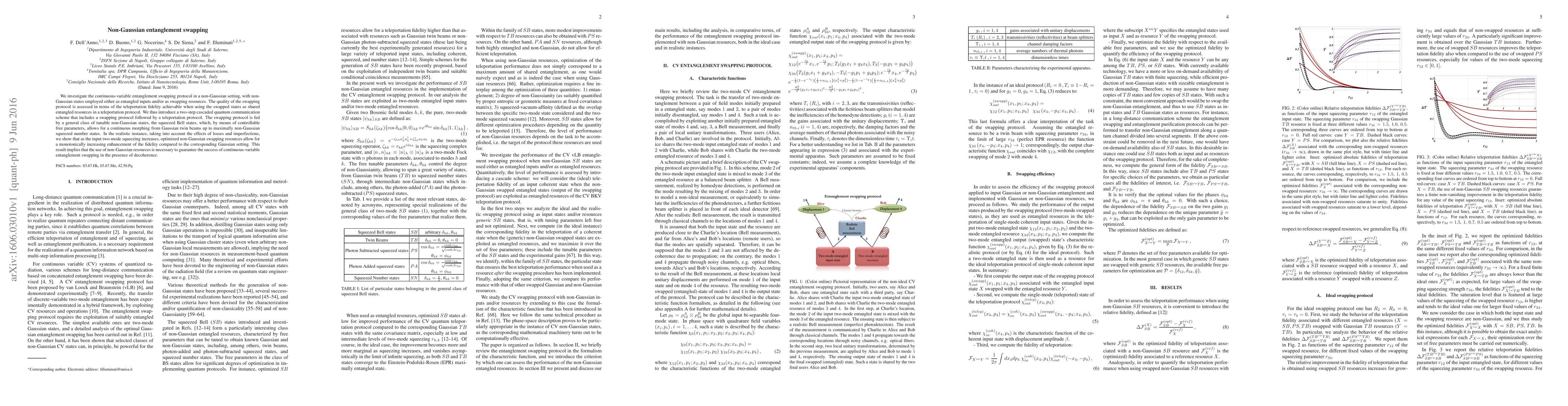 This paper explores continuous-variable entanglement swapping using non-Gaussian states, demonstrating that optimized non-Gaussian resources enhance teleportation fidelity compared to Gaussian inputs, especially under realistic conditions with losses and imperfections. The study introduces a tunable class of non-Gaussian states, showing their necessity for successful entanglement swapping amidst decoherence.