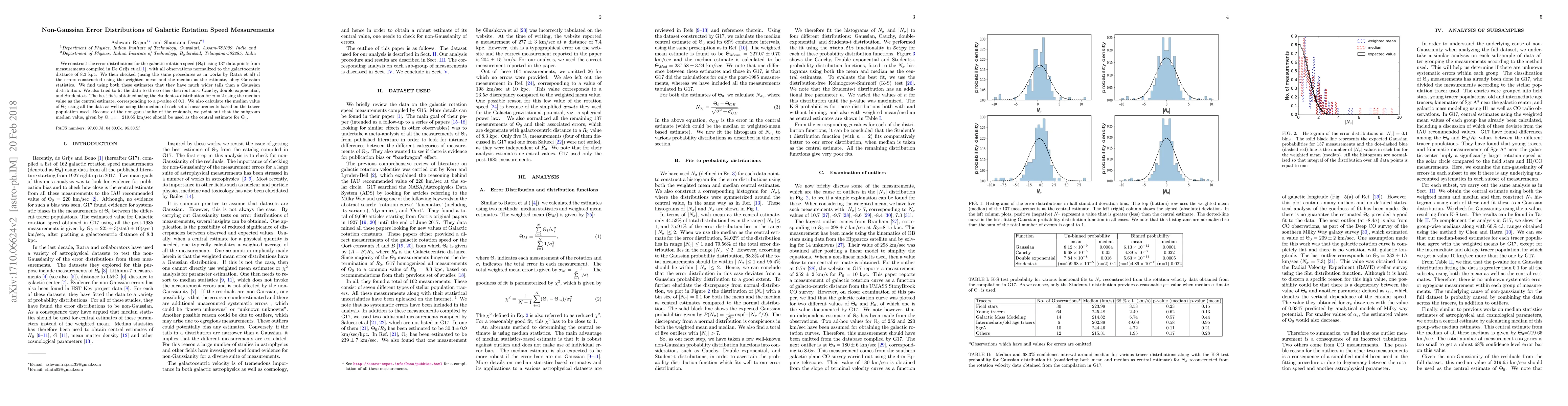 This study investigates the error distributions of galactic rotation speed measurements, finding that they do not follow Gaussian statistics but instead fit better to a Student's-t distribution with $n=2$. The median value of $\Theta_0$ is recommended as the central estimate due to the non-Gaussian nature of the residuals.