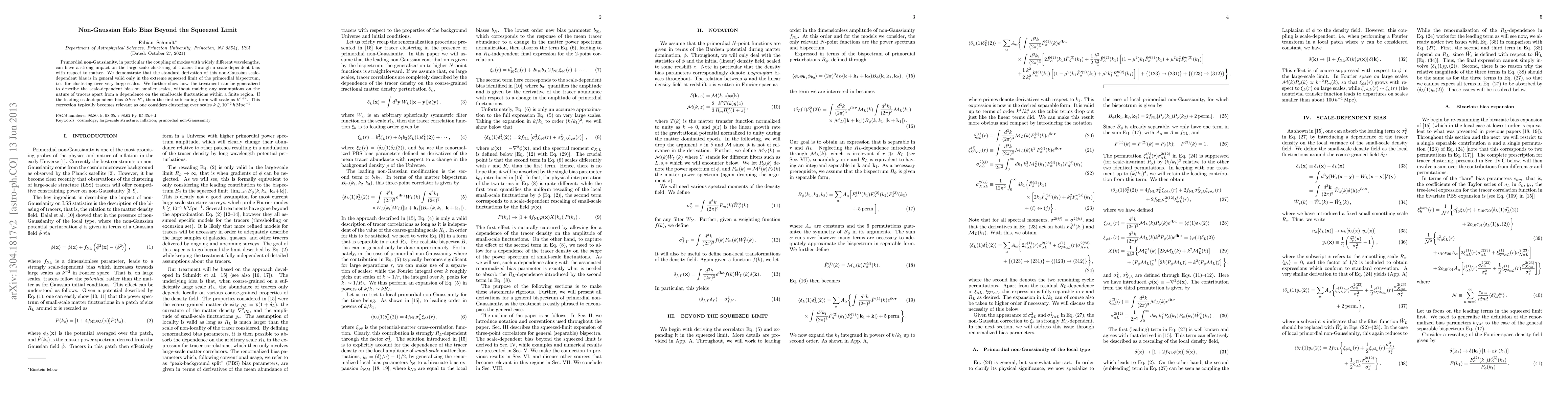 Primordial non-Gaussianity, in particular the coupling of modes with widely different wavelengths, can have a strong impact on the large-scale clustering of tracers through a scale-dependent bias with respect to matter. We demonstrate that the standard derivation of this non-Gaussian scale-dependent bias is in general valid only in the extreme squeezed limit of the primordial bispectrum, i.e. for clustering over very large scales. We further show how the treatment can be generalized to describe the scale-dependent bias on smaller scales, without making any assumptions on the nature of tracers apart from a dependence on the small-scale fluctuations within a finite region. If the leading scale-dependent bias \Delta b \propto k^{\alpha}, then the first subleading term will scale as k^{\alpha+2}. This correction typically becomes relevant as one considers clustering over scales k >~ 0.01 h Mpc^{-1}.