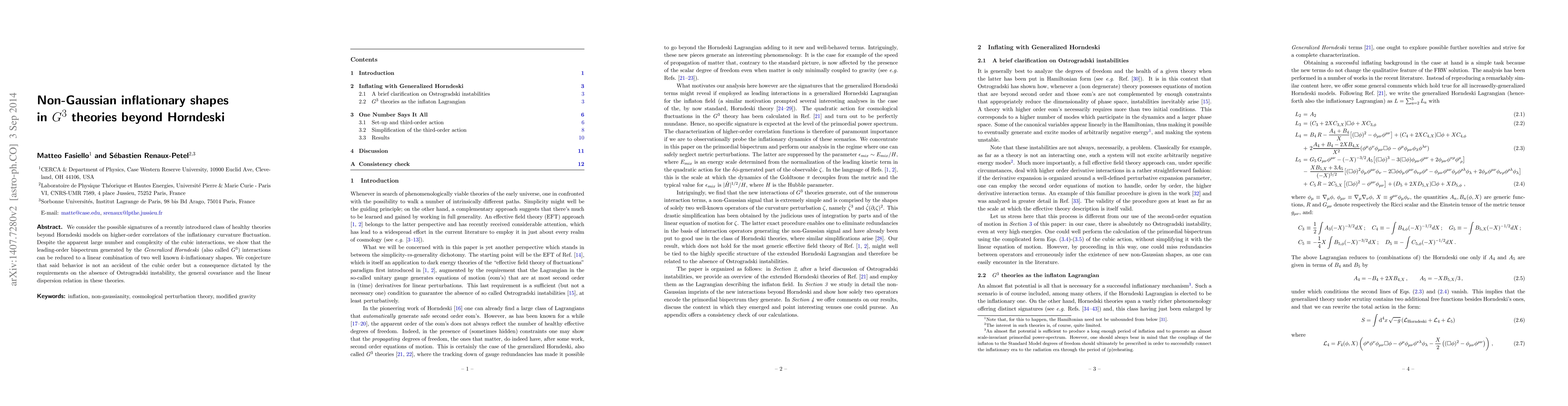 This paper investigates the signatures of new theories beyond Horndeski, specifically Generalized Horndeski ($G^3$), on inflationary curvature fluctuations. Despite complex cubic interactions, it finds that the leading-order bispectrum simplifies to a linear combination of two $k$-inflationary shapes, suggesting a deeper theoretical constraint.