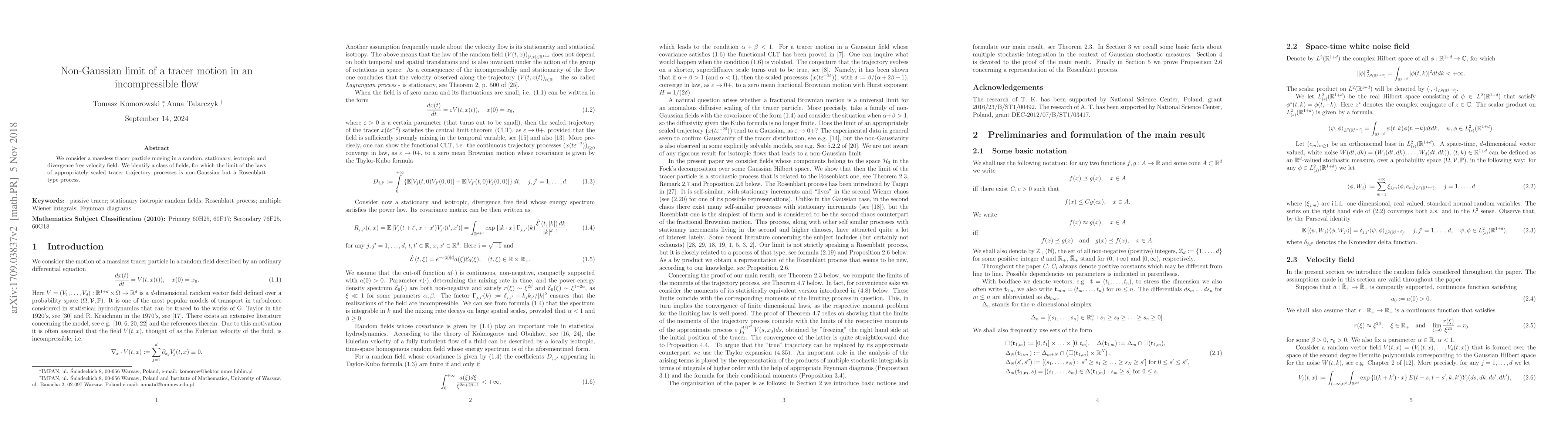 We consider a massless tracer particle moving in a random, stationary, isotropic and divergence free velocity field. We identify a class of fields, for which the limit of the laws of appropriately scaled tracer trajectory processes is non-Gaussian but a Rosenblatt type of process.
