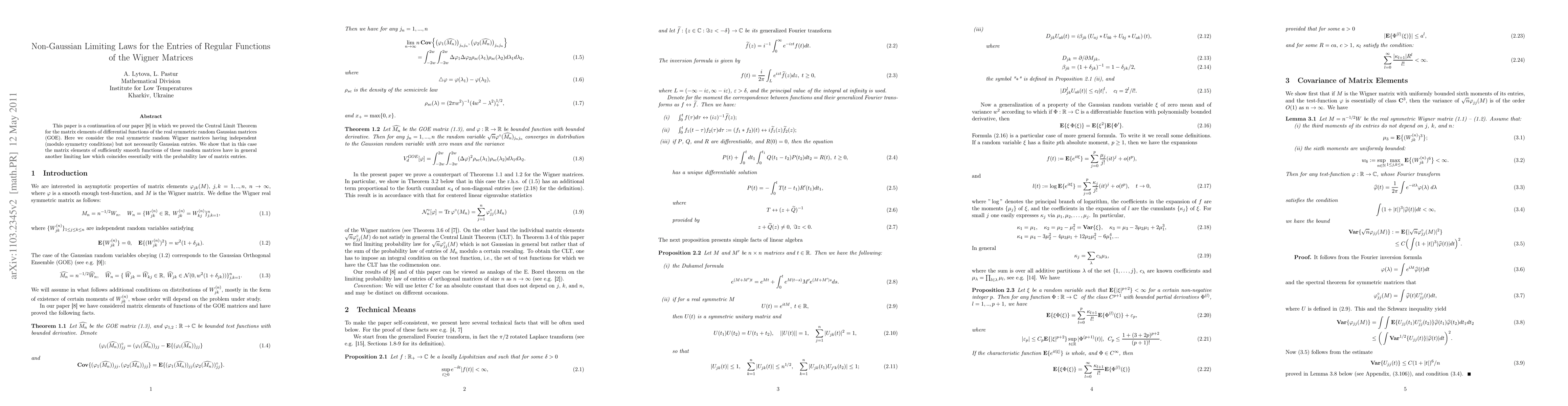 This paper extends previous work on matrix element fluctuations for Gaussian random matrices to Wigner matrices with non-Gaussian entries, showing that their sufficiently smooth functions follow a non-Gaussian limiting law similar to the distribution of matrix entries.