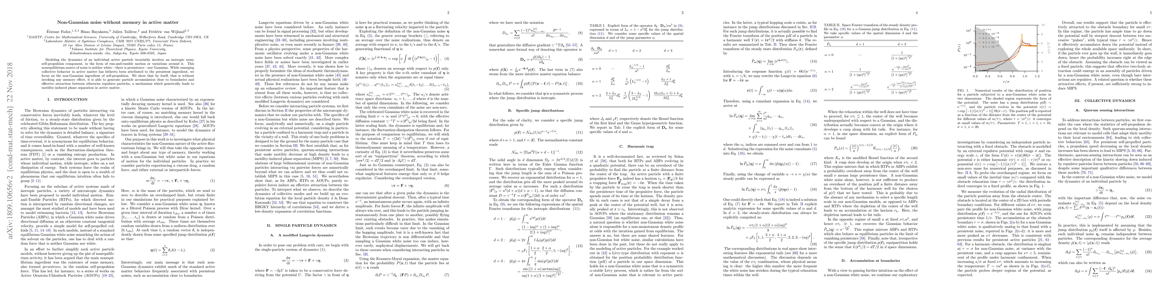 Research finds that non-Gaussian noise in active particles can cause particle accumulation near boundaries and attraction between repulsive particles, leading to phase separation without invoking memory effects.