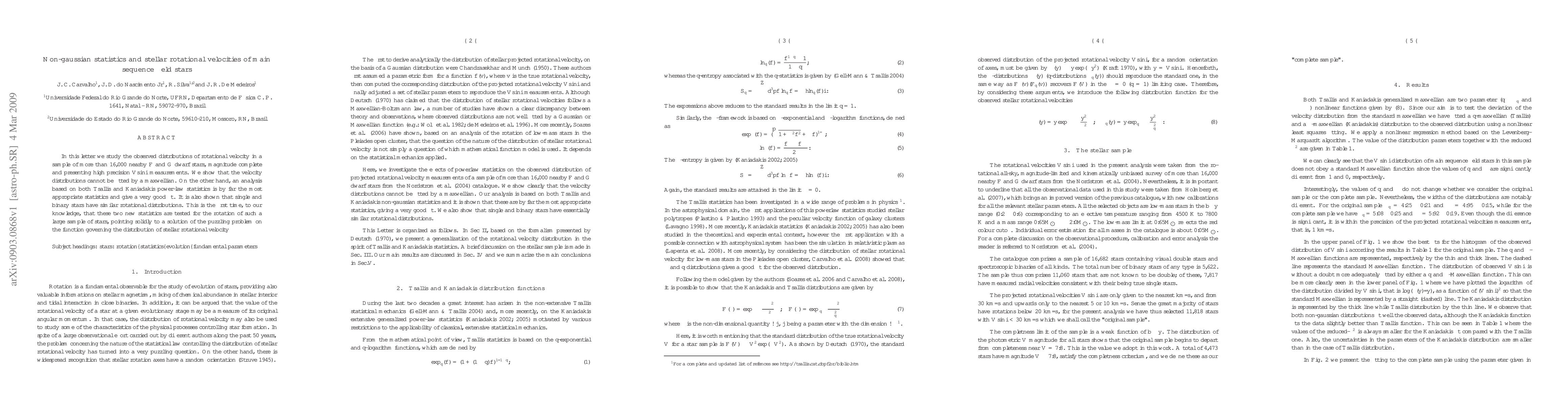 This paper investigates the rotational velocity distributions of over 16,000 nearby F and G dwarf stars, finding that neither Maxwellian nor Gaussian statistics fit the data. Instead, Tsallis and Kaniadakis power-law statistics provide a better fit, suggesting a novel approach to understanding stellar rotational velocities.