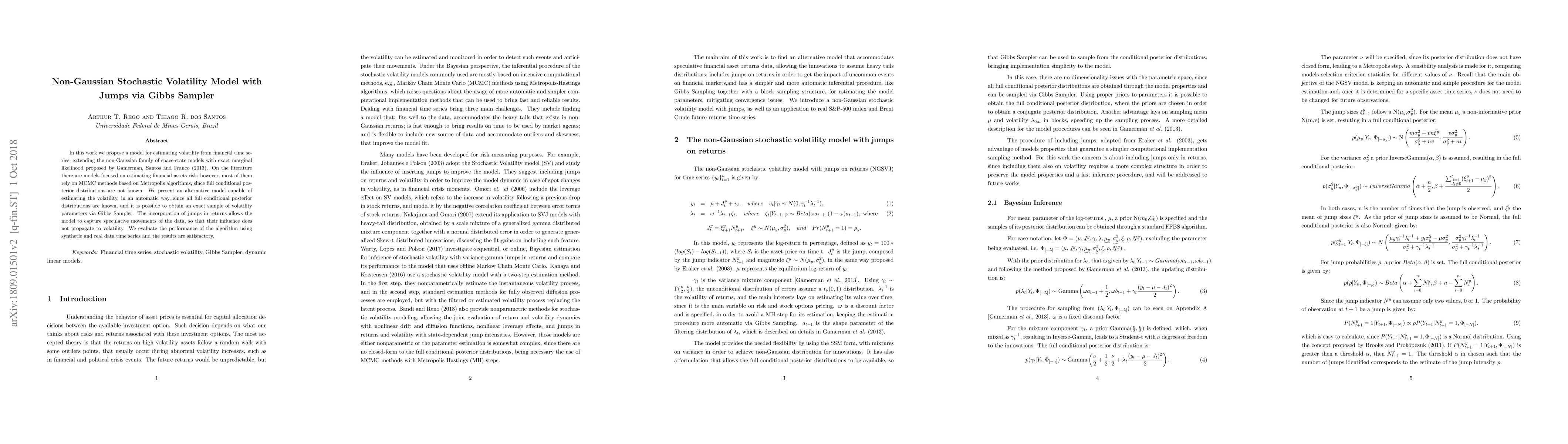 In this work, we propose a model for estimating volatility from financial time series, extending the non-Gaussian family of space-state models with exact marginal likelihood proposed by Gamerman, Santos and Franco (2013). On the literature there are models focused on estimating financial assets risk, however, most of them rely on MCMC methods based on Metropolis algorithms, since full conditional posterior distributions are not known. We present an alternative model capable of estimating the volatility, in an automatic way, since all full conditional posterior distributions are known, and it is possible to obtain an exact sample of parameters via Gibbs Sampler. The incorporation of jumps in returns allows the model to capture speculative movements of the data, so that their influence does not propagate to volatility. We evaluate the performance of the algorithm using synthetic and real data time series. Keywords: Financial time series, Stochastic volatility, Gibbs Sampler, Dynamic linear models.