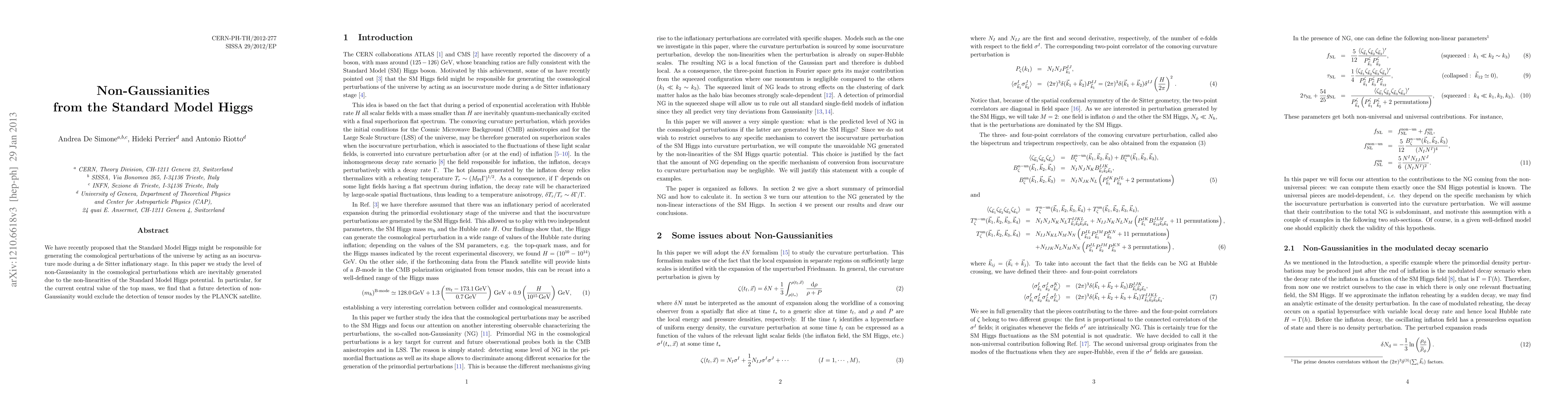 A new study examines the potential of the Standard Model Higgs to generate non-Gaussian cosmological perturbations, which could exclude future detection of tensor modes by the PLANCK satellite if confirmed.