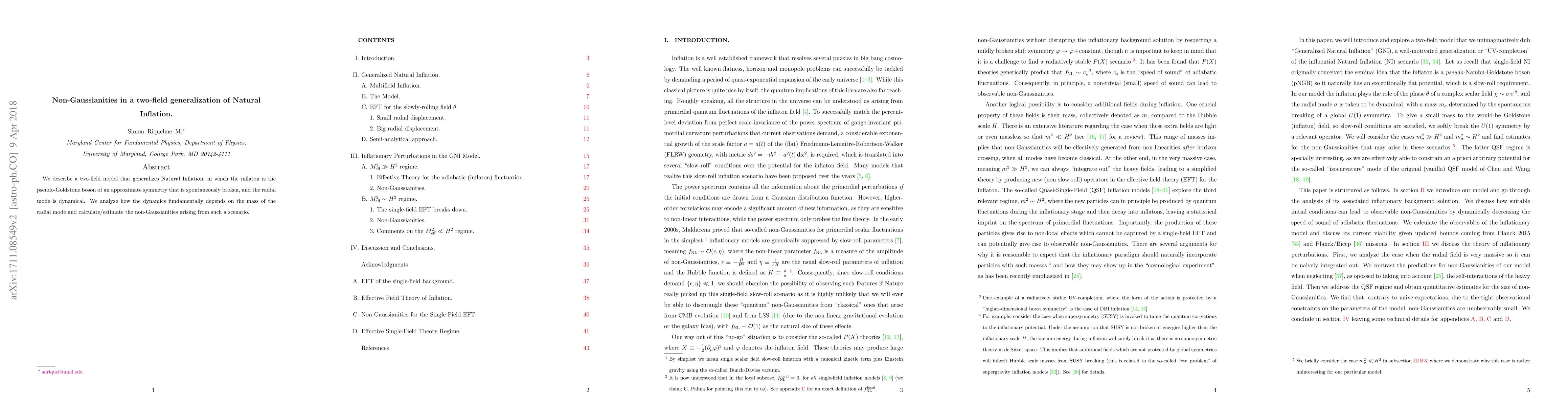 We describe a two-field model that generalizes Natural Inflation, in which the inflaton is the pseudo-Goldstone boson of an approximate symmetry that is spontaneously broken, and the radial mode is dynamical. We analyze how the dynamics fundamentally depends on the mass of the radial mode and calculate/estimate the non-Gaussianities arising from such a scenario.