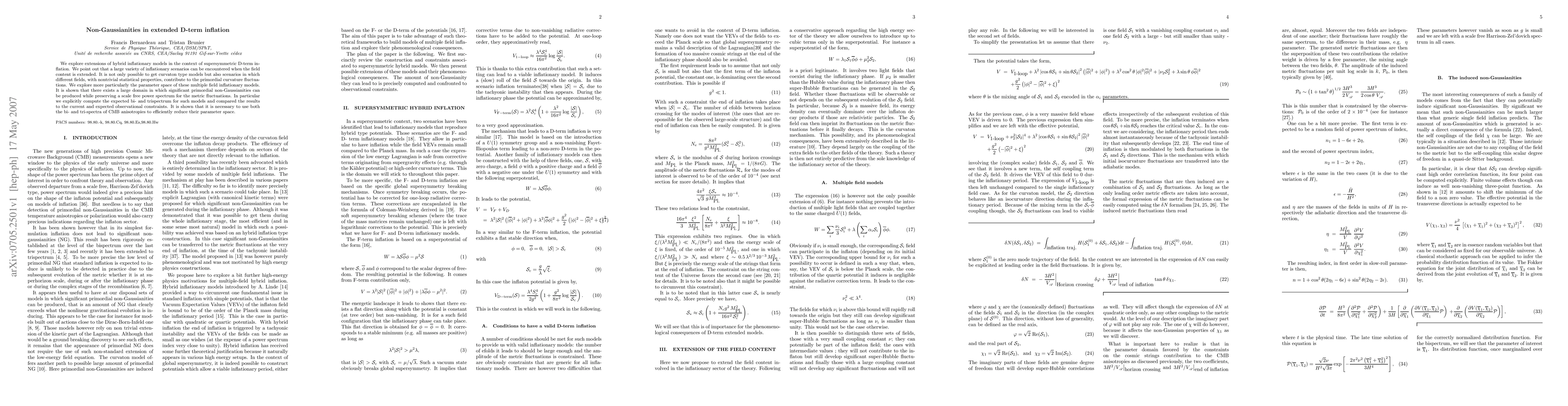 We explore extensions of hybrid inflationary models in the context of supersymmetric D-term inflation. We point out that a large variety of inflationary scenarios can be encountered when the field content is extended. It is not only possible to get curvaton type models but also scenarios in which different fields, with nontrivial statistical properties, contribute to the primordial curvature fluctuations. We explore more particularly the parameter space of these multiple field inflationary models. It is shown that there exists a large domain in which significant primordial non-Gaussianities can be produced while preserving a scale free power spectrum for the metric fluctuations. In particular we explicitly compute the expected bi- and trispectrum for such models and compared the results to the current and expected observational constraints. It is shown that it is necessary to use both the bi- and tri-spectra of CMB anisotropies to efficiently reduce their parameter space.