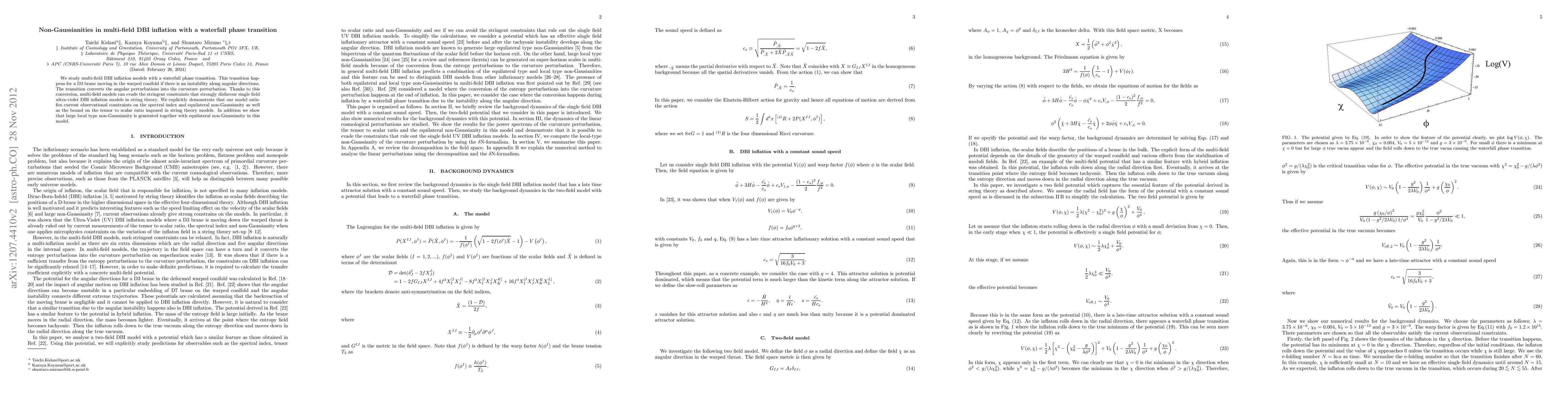 This paper investigates multi-field DBI inflation models with a waterfall phase transition, showing that such transitions can convert angular perturbations into curvature perturbations, thereby evading constraints that single-field models face. The study demonstrates compliance with observational constraints and predicts both equilateral and large local type non-Gaussianities.