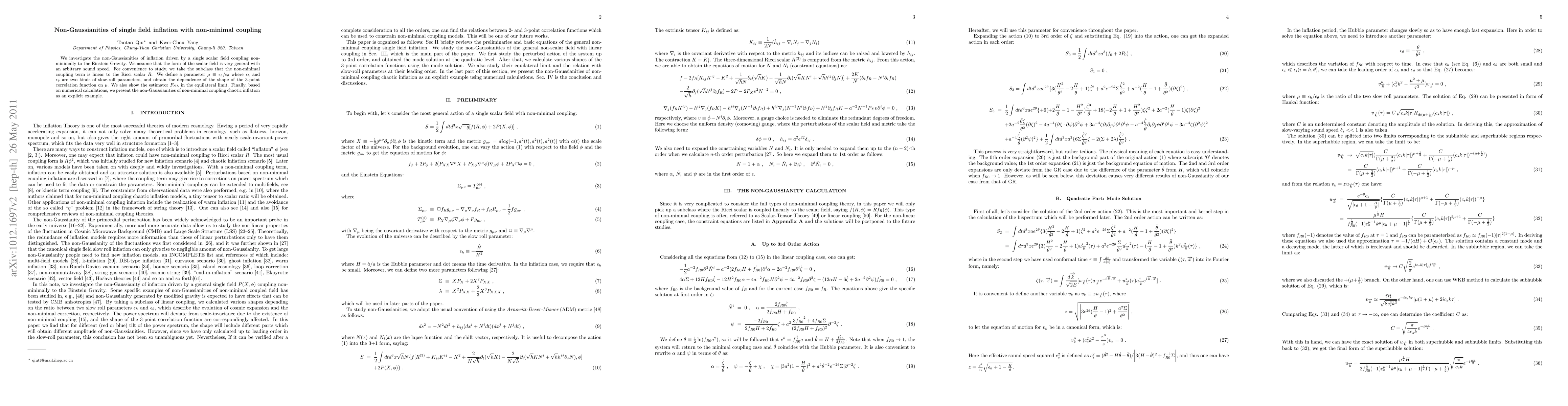 This paper examines non-Gaussianities in single-field inflation models with non-minimal coupling to Einstein gravity, focusing on a subclass with linear Ricci scalar coupling. It analyzes the shape of the 3-point correlation function and the $F_{NL}$ estimator in the equilateral limit, providing numerical results for non-Gaussianities in chaotic inflation scenarios.