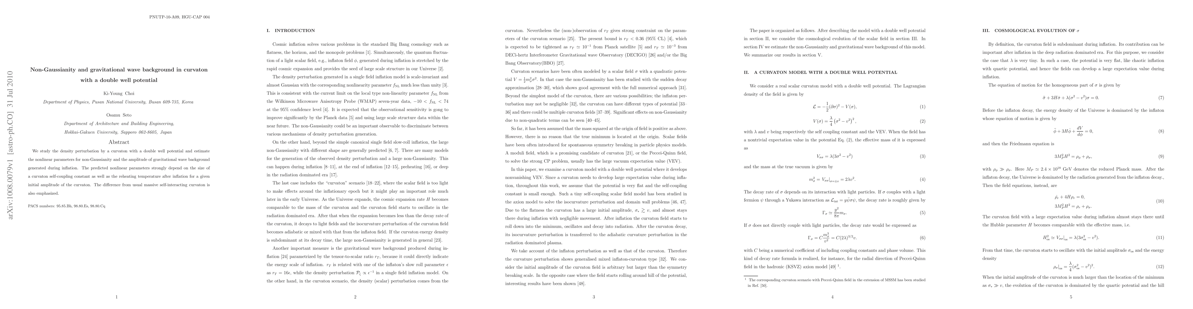 This paper investigates density perturbations from a curvaton with a double well potential, focusing on non-Gaussianity and gravitational wave background during inflation. The study finds that nonlinear parameters for non-Gaussianity and the amplitude of the gravitational wave background are highly dependent on the curvaton self-coupling constant and the reheating temperature.