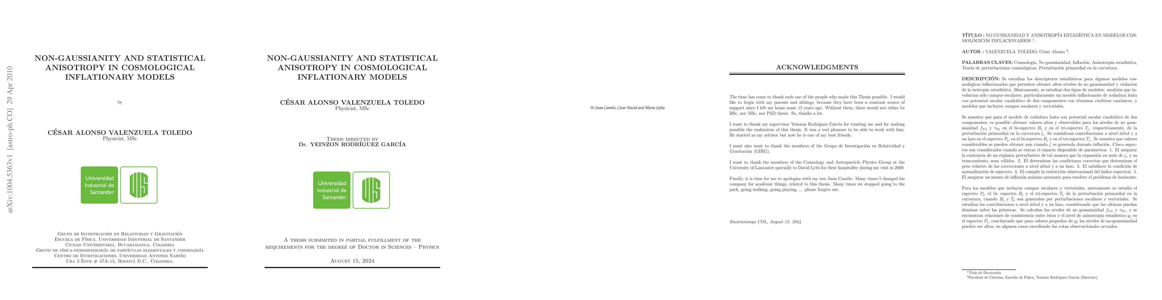 We study the statistical descriptors for some cosmological inflationary models that allow us to get large levels of non-gaussianity and violations of statistical isotropy. Basically, we study two different class of models: a model that include only scalar field perturbations, specifically a subclass of small-field slow-roll models of inflation with canonical kinetic terms, and models that admit both vector and scalar field perturbations. We study the former to show that it is possible to attain very high, including observable, values for the levels of non-gaussianity f_{NL} and \tao_{NL} in the bispectrum B_\zeta and trispectrum T_\zeta of the primordial curvature perturbation \zeta respectively. Such a result is obtained by taking care of loop corrections in the spectrum P_\zeta, the bispectrum B_\zeta and the trispectrum T_\zeta . Sizeable values for f_{NL} and \tao_{NL} arise even if \zeta is generated during inflation. For the latter we study the spectrum P_\zeta, bispectrum B_\zeta and trispectrum $T_\zeta of the primordial curvature perturbation when \zeta is generated by scalar and vector field perturbations. The tree-level and one-loop contributions from vector field perturbations are worked out considering the possibility that the one-loop contributions may be dominant over the tree level terms. The levels of non-gaussianity f_{NL} and \tao_{NL}, are calculated and related to the level of statistical anisotropy in the power spectrum, g_\zeta . For very small amounts of statistical anisotropy in the power spectrum, the levels of non-gaussianity may be very high, in some cases exceeding the current observational limit.