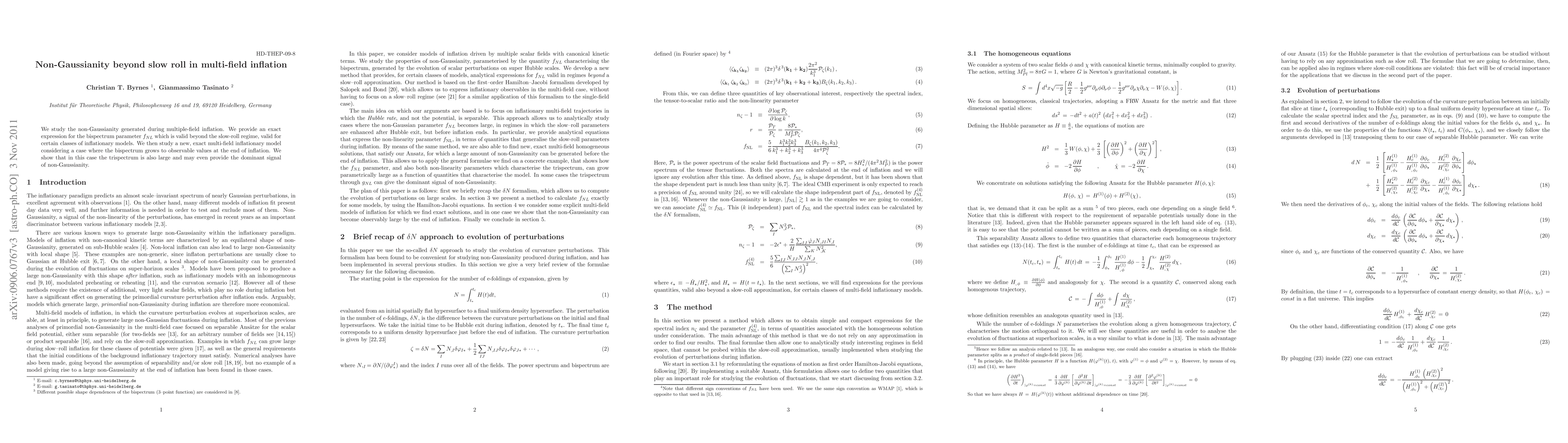 This paper presents an exact expression for the bispectrum parameter f_NL in multi-field inflation beyond the slow-roll regime, applicable to certain inflationary models. It also explores a new multi-field model where the bispectrum reaches observable levels, revealing that the trispectrum may dominate the non-Gaussianity signal.