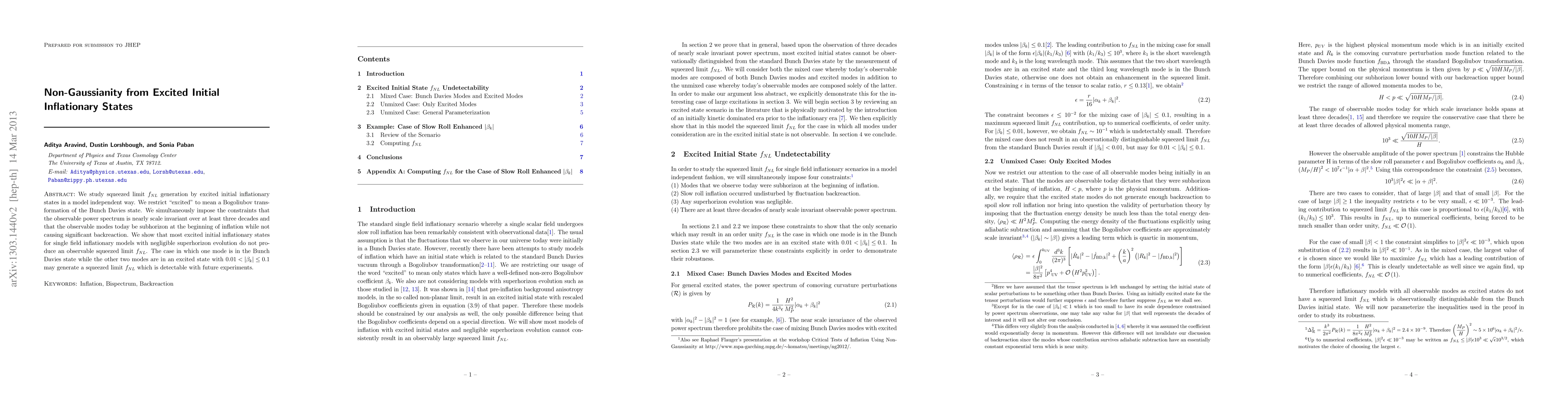 We study squeezed limit $f_{NL}$ generation by excited initial inflationary states in a model independent way. We restrict "excited" to mean a Bogoliubov transformation of the Bunch Davies state. We simultaneously impose the constraints that the observable power spectrum is nearly scale invariant over at least three decades and that the observable modes today be subhorizon at the beginning of inflation while not causing significant backreaction. We show that most excited initial inflationary states for single field inflationary models with negligible superhorizon evolution do not produce an observable squeezed limit $f_{NL}$. The case in which one mode is in the Bunch Davies state while the other two modes are in an excited state with $0.01<|\beta_k|\leq0.1$ may generate a squeezed limit $f_{NL}$ which is detectable with future experiments.