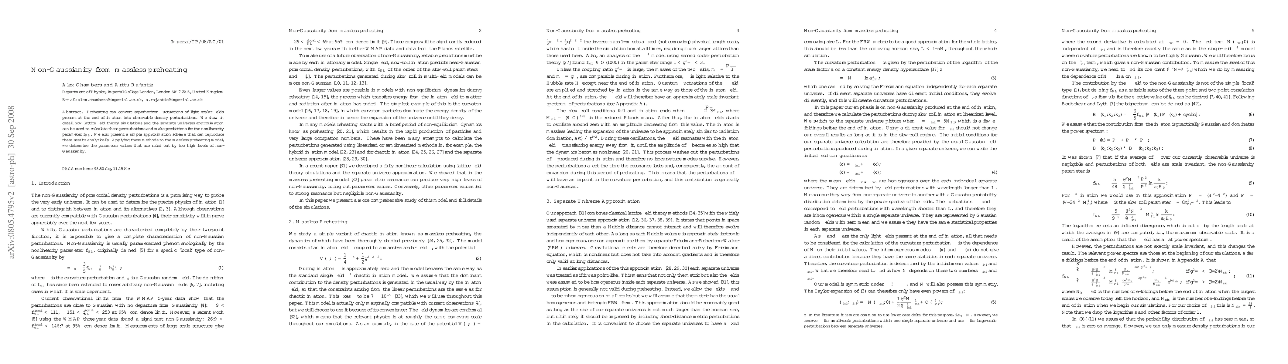 This paper investigates how massless preheating generates non-Gaussian density perturbations from superhorizon fluctuations, using lattice field theory and analytical approximations to calculate these perturbations and determine parameter values that lead to excessive non-Gaussianity, ruling them out.