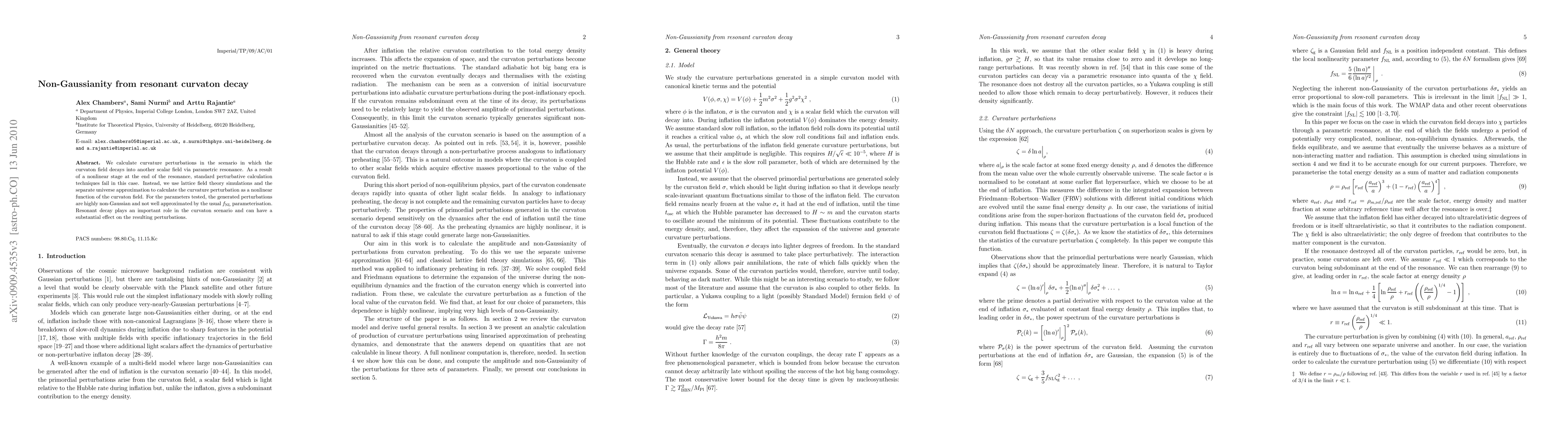 This paper investigates curvature perturbations from curvaton decay through resonant decay into another scalar field, employing lattice field theory and the separate universe approximation. The nonlinear resonance results in highly non-Gaussian perturbations, challenging standard perturbative methods and fNL parameterisation.