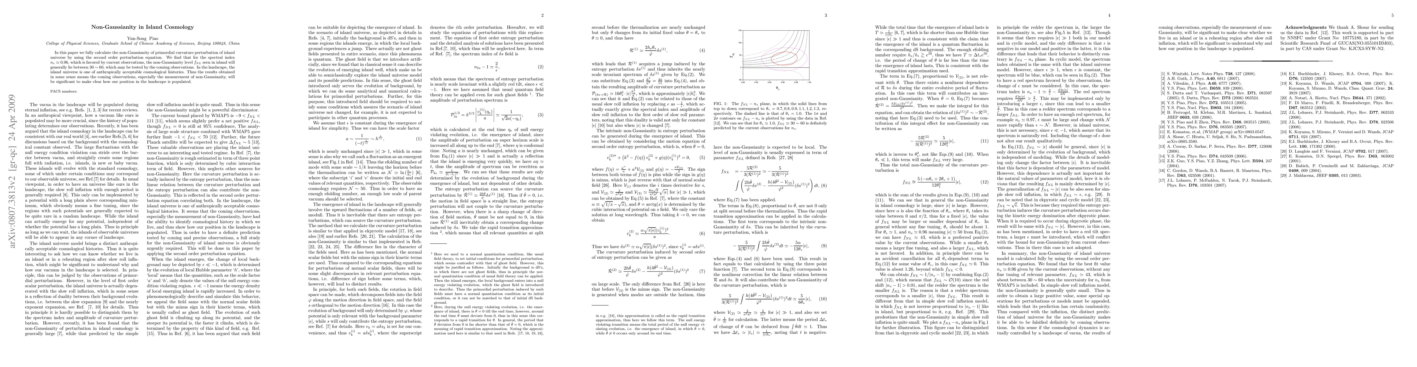 The research calculates non-Gaussianity in island cosmology using the second-order perturbation equation, analyzing the emergence of islands in the landscape as anthropically acceptable cosmological histories.