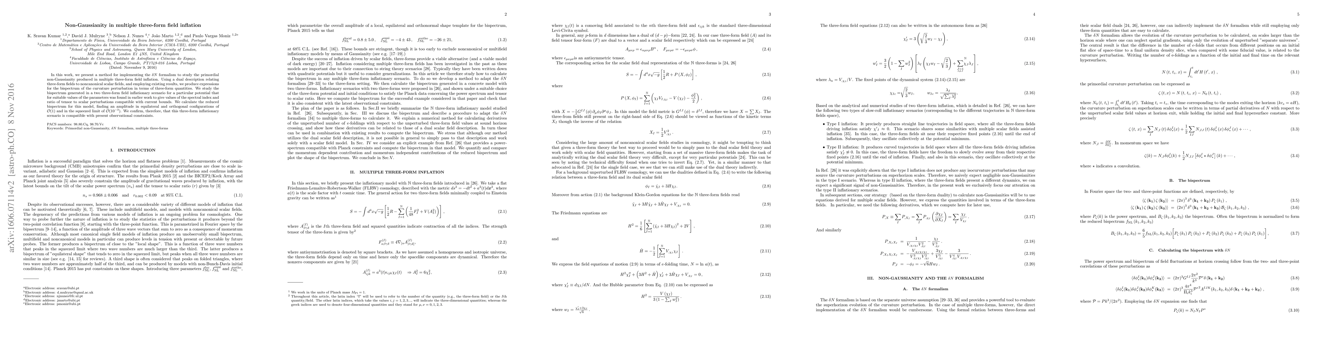 In this work, we present a method for implementing the $\delta N$ formalism to study the primordial non-Gaussianity produced in multiple three-form field inflation. Using a dual description relating three-form fields to noncanonical scalar fields, and employing existing results, we produce expressions for the bispectrum of the curvature perturbation in terms of three-form quantities. We study the bispectrum generated in a two three-form field inflationary scenario for a particular potential that for suitable values of the parameters was found in earlier work to give values of the spectral index and ratio of tensor to scalar perturbations compatible with current bounds. We calculate the reduced bispectrum for this model, finding an amplitude in equilateral and orthogonal configurations of ${\cal O}(1)$ and in the squeezed limit of ${\cal O}(10^{-3})$. We confirm, therefore, that this three-form inflationary scenario is compatible with present observational constraints.