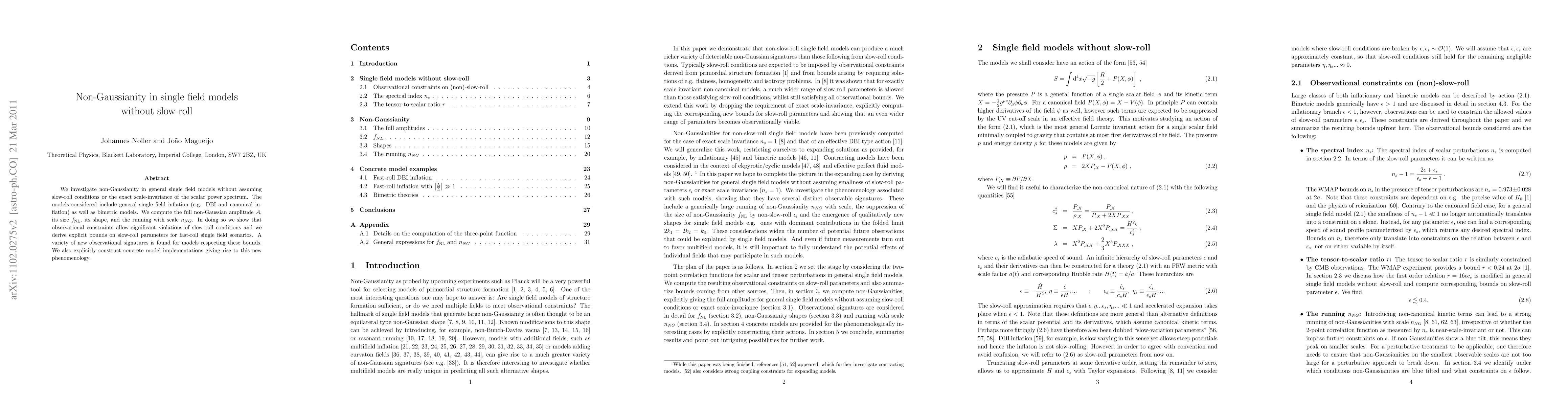 This paper explores non-Gaussianity in single field inflationary models without relying on slow-roll or exact scale-invariance assumptions. It identifies new observational signatures and constructs specific models that exhibit significant deviations from slow-roll conditions, providing explicit bounds on slow-roll parameters for fast-roll scenarios.